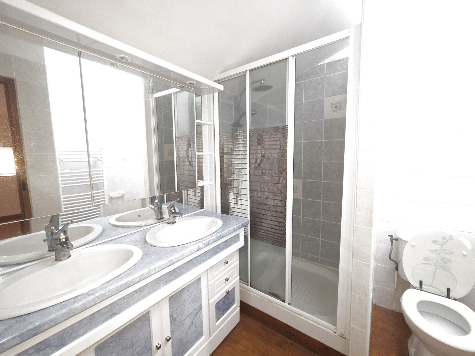 A l'étage trois grandes chambres dont deux de 29 m² avec salle 'd'eau et wc ainsi qu'une autre de 40 m² ( possibilité de la séparer pour obtenir une quatrième chambre ou un bureau ).