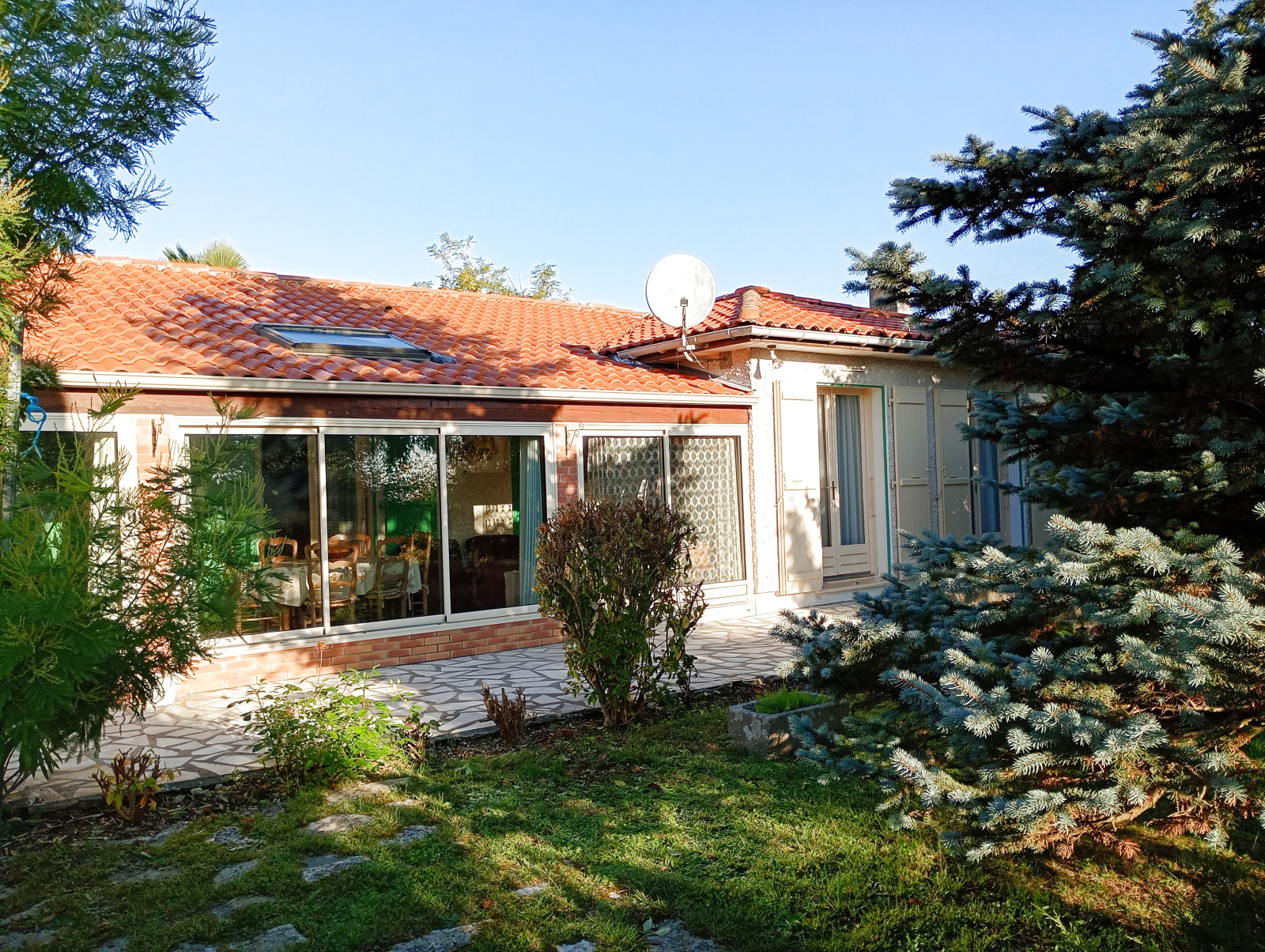 Sur la commune de Genté(16130), à 8 km de Cognac, maison de plain-pied de 1976 située dans une impasse au calme.Elle se compose d'une véranda, une entrée desservant un salon, une pièce de vie, une cuisine aménagée, un cellier, deux chambres (voir possibilité d'une troisième sur partie pièce de vie), une salle de bains et un wc. Un grand garage avec atelier et cave, un abri. L'ensemble étant implanté au milieu d'un magnifique jardin clos et arboré de plus de 1300m². Ce bien offre un fort portentiel. Il est idéalement entretenu, possède du double vitrage/volets aluminium/plusieurs modes de chauffage présents (radiateurs électriques-PAC-cheminée)/tout à l'égoût/fibre. Disponoble en JUIN 2026. Pour toutes questions ou visites, merci de contacter Sandrine GRATEREAU-TERREAU au 06.88.99.30.58