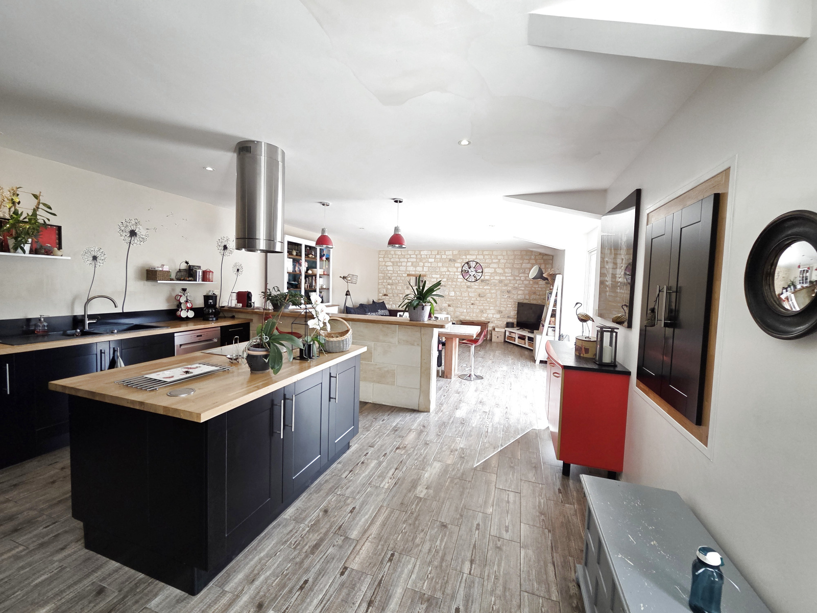 Venez découvrir derrière son porche cette grande maison ancienne rénovée (mitoyenne) composée d'une belle pièce de vie lumineuse de plus de 50 m²(cuisine aménagée et équipée ouverte sur un espace salon , salle à manger) , de 4 chambres spacieuses dont une en plain-pied, d' une salle d' eau avec wc , d'une salle de bains (à rafraichir), d'une pièce de plus de 30 m² avec cheminée (à rénover , idéal en deuxième pièce de vie, salle de jeux ou autre), chaufferie ( chauffage central fuel ) , cellier, cave et garages avec grenier (44 m² x 2). Puits, grande cour, et espace jardin.