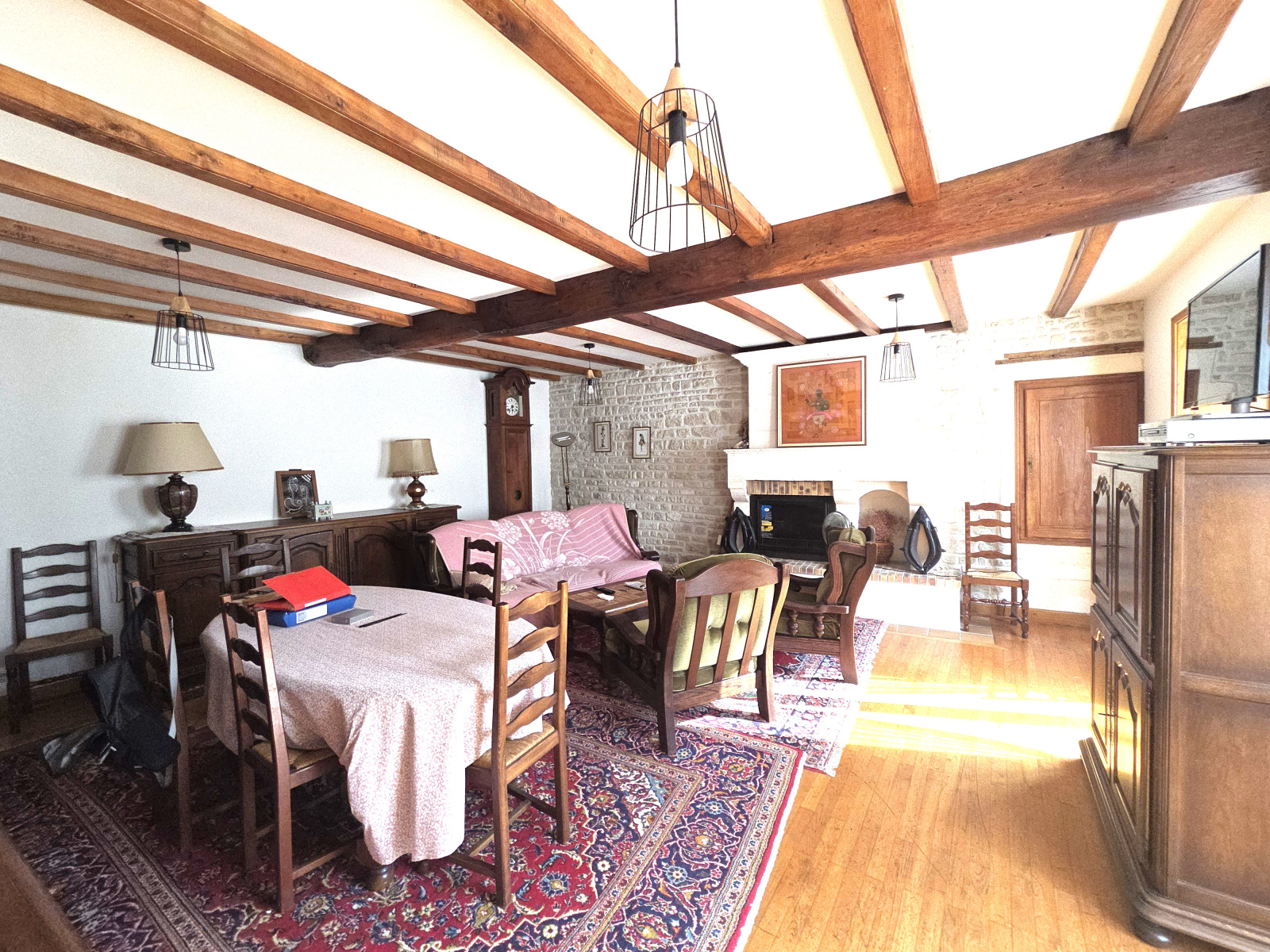 Bien caché derrière son porche, cette maison charentaise rénovée de près de 160 m² est composé au rez de chaussée d'une spacieuse entrée avec placards, d'une cuisine aménagée, d'un séjour/salon avec cheminée (insert au gaz non connecté et à finir de monter ) , un bureau, deux salles d'eau, deux wc , et une grande dépendance attenante de plus de 60 m² permettant de laisser libre cours à d'autres projets.