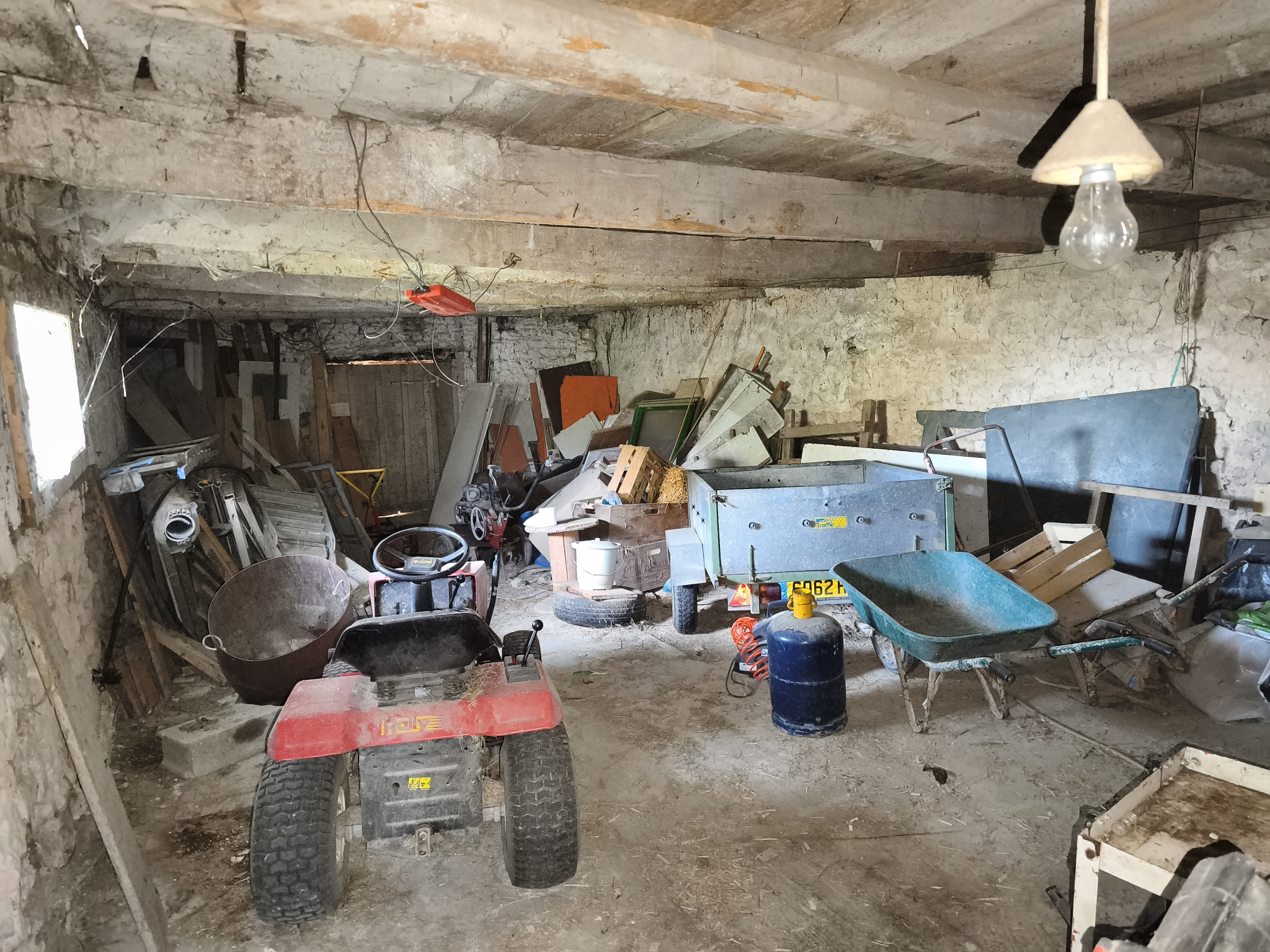Sur le terrain de plus d’un hectare, vous trouverez également une grande grange non attenante d’environ 115 m² au sol, idéale pour un atelier, du stockage ou un futur aménagement.