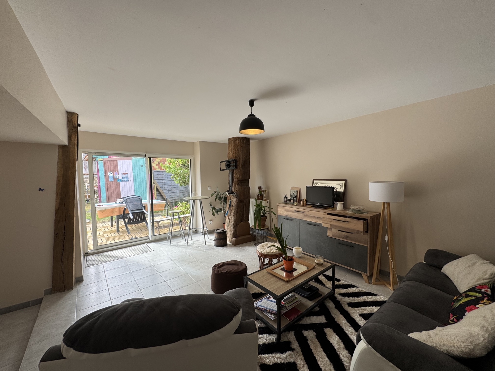 Le rez-de-chaussée est composé d'une entrée donnant accès sur un vaste séjour très lumineux avec cuisine ouverte de 53 m², une grande chambre, une salle d'eau ainsi qu'un wc indépendant.