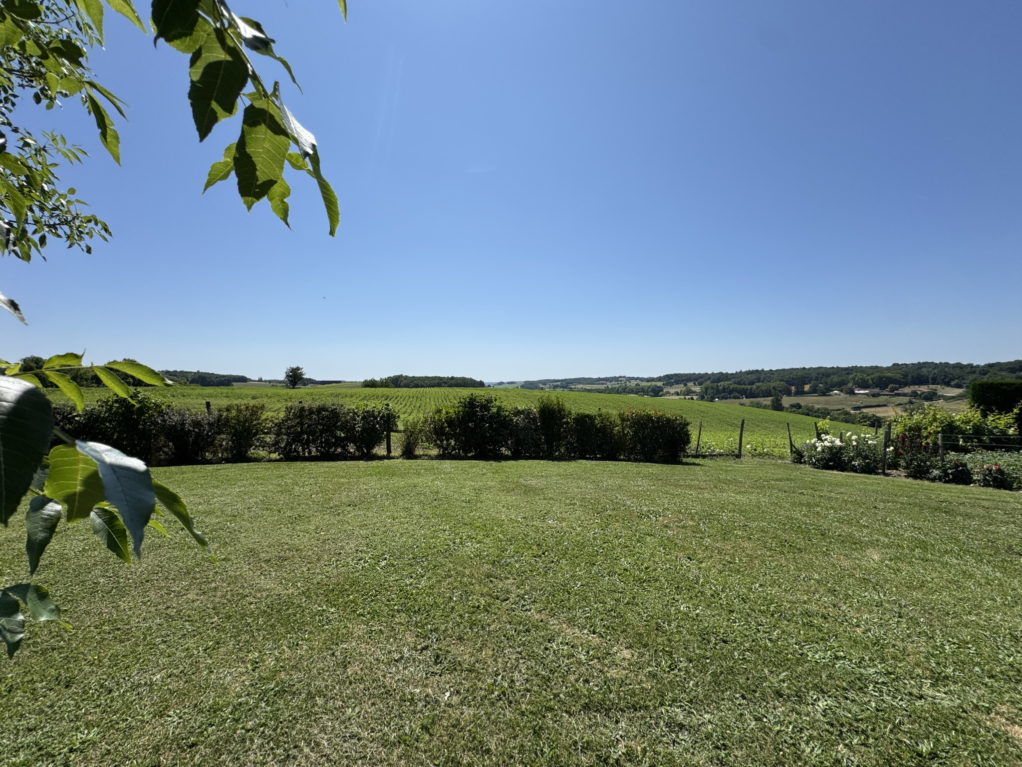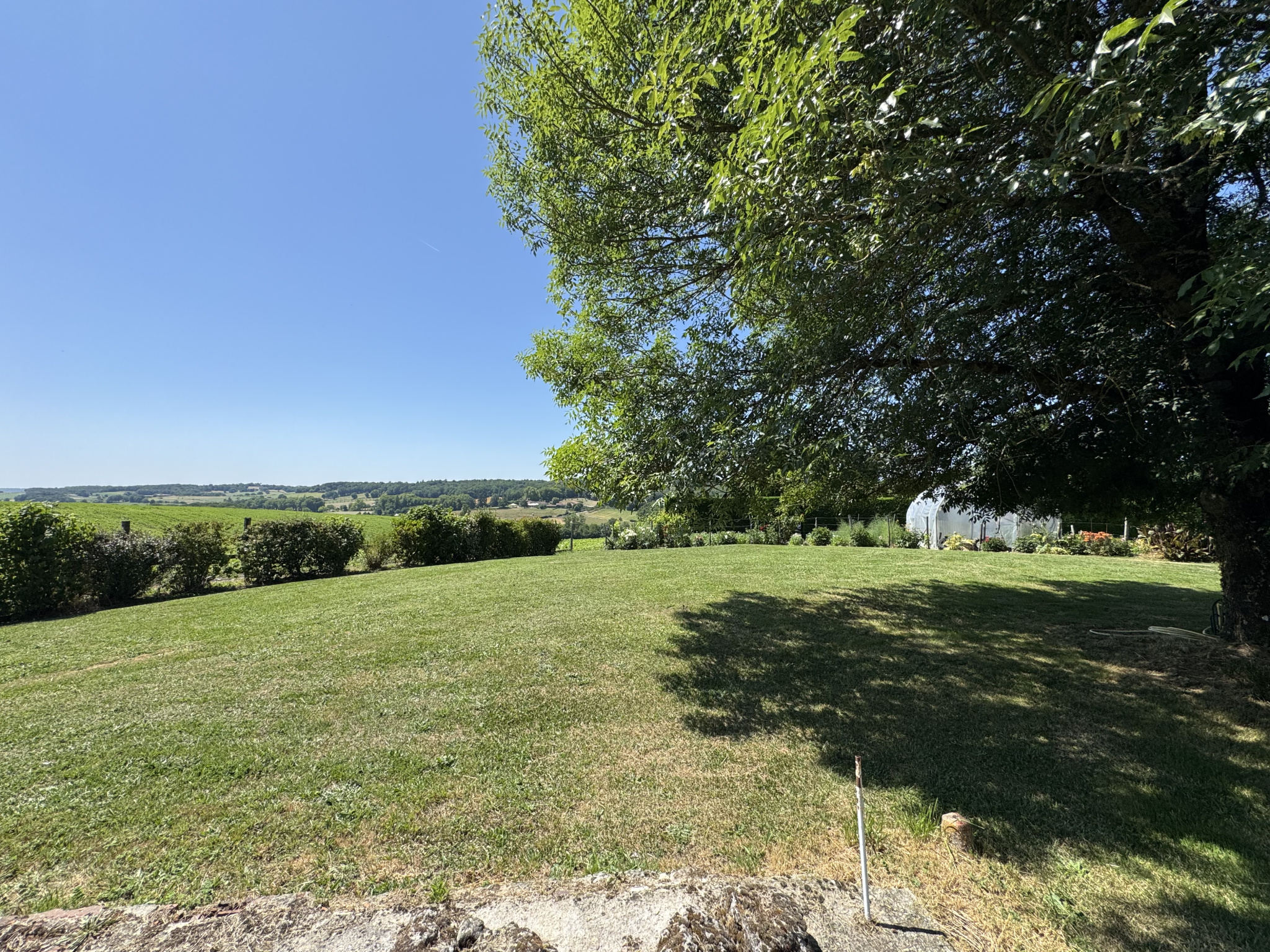 L'extérieur vous offre un terrain de 1 696 m² avec une très belle vue sur la campagne environnante.