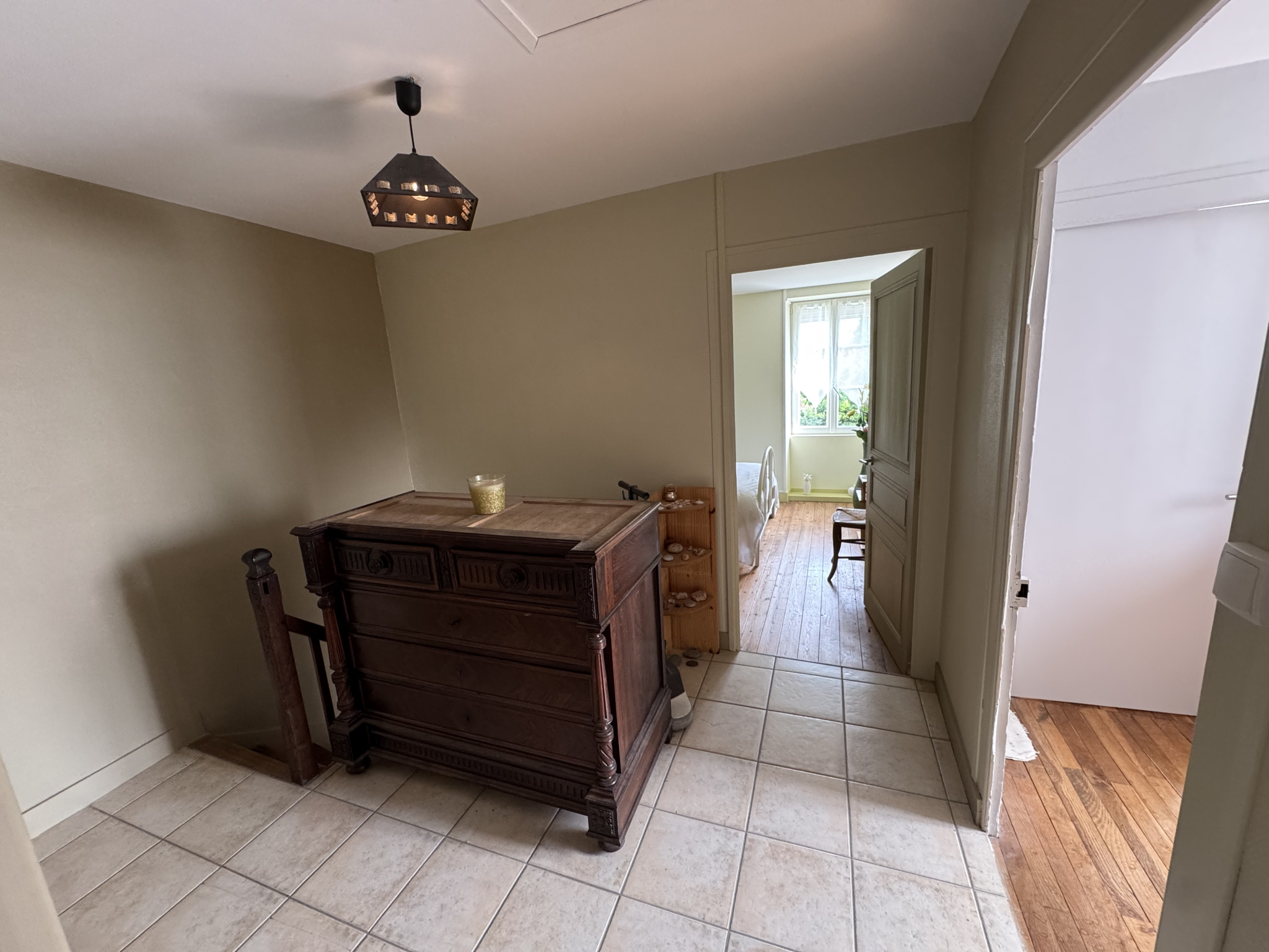 À l'étage, un palier dessert une chambre et son bureau, une chambre avec un dressing ainsi qu'une salle d'eau et un wc indépendant.