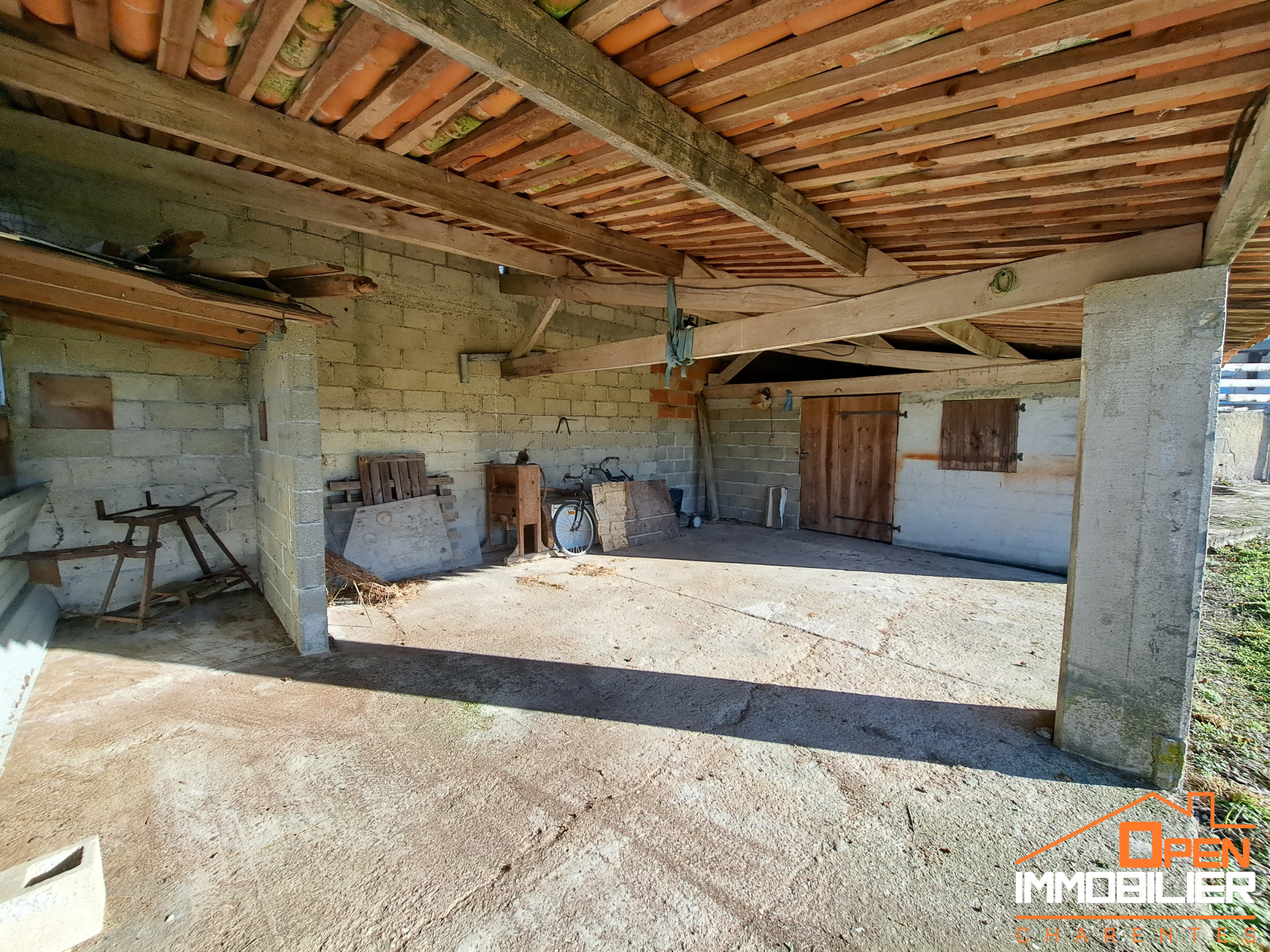 Côté extérieur, vous pourrez profiter de la terrasse, d'un appentis pouvant abriter vos véhicules, des ateliers pratiques pour le rangement ou pour le bricolage et également du jardin clos.