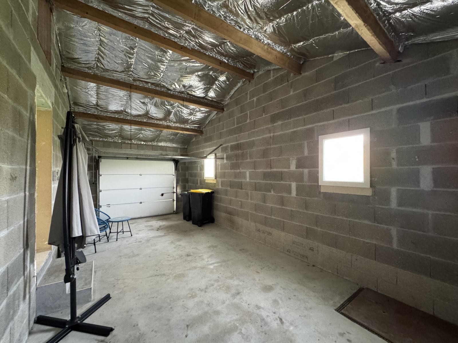 Attenant à l'habitation, un garage de 27 m² avec une cave. Le tout sur un terrain entièrement clos et arboré de 916 m².