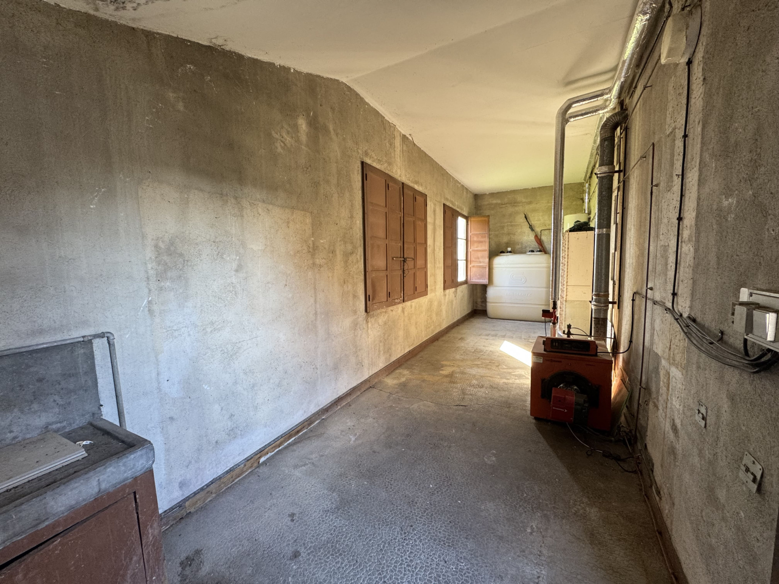 Concernant les dépendances et pièces annexes, ce bien bénéficie d'une chaufferie, une pièce supplémentaire à aménager selon vos envies (ancien bureau), ainsi qu’un préau de 68 m² et un garage situé à l’arrière de la maison.
