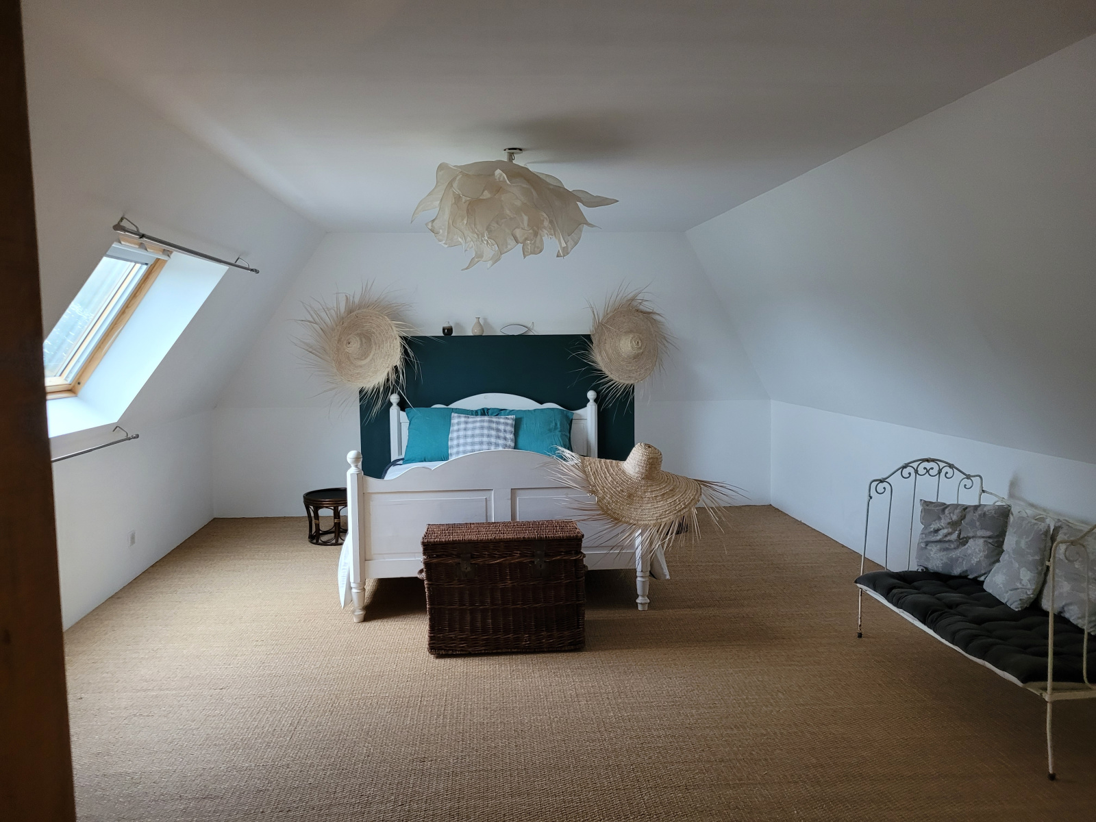 Poursuivons. Dans les combles aménagées : un hall, 2 chambres spacieuses (16m2 et 18,7m2) lumineuses et cosy.