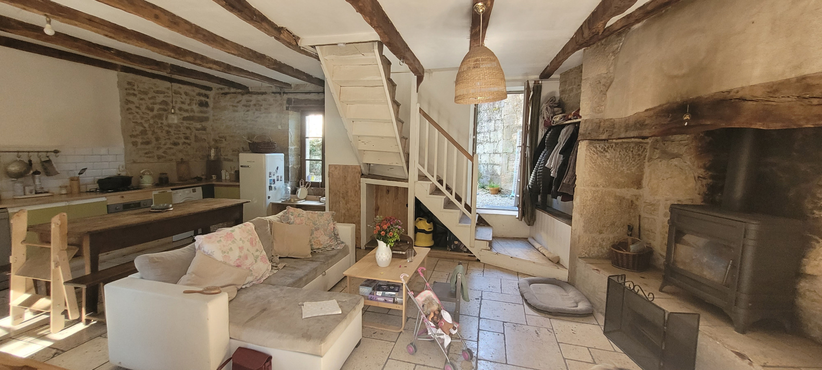 Bienvenue ! Une grande pièce de vie avec coin cuisine (40m2)en rez de chaussée vous attend.