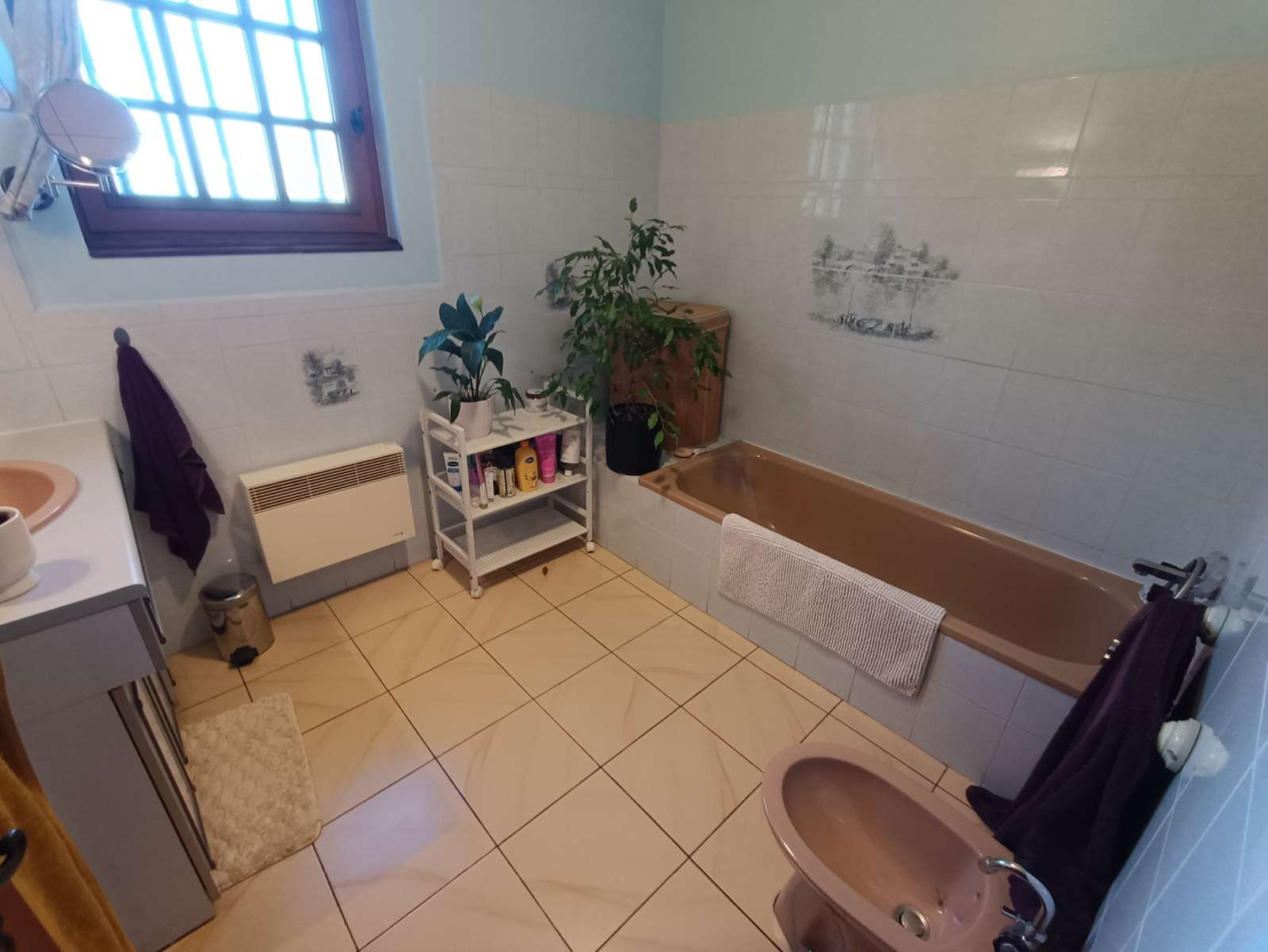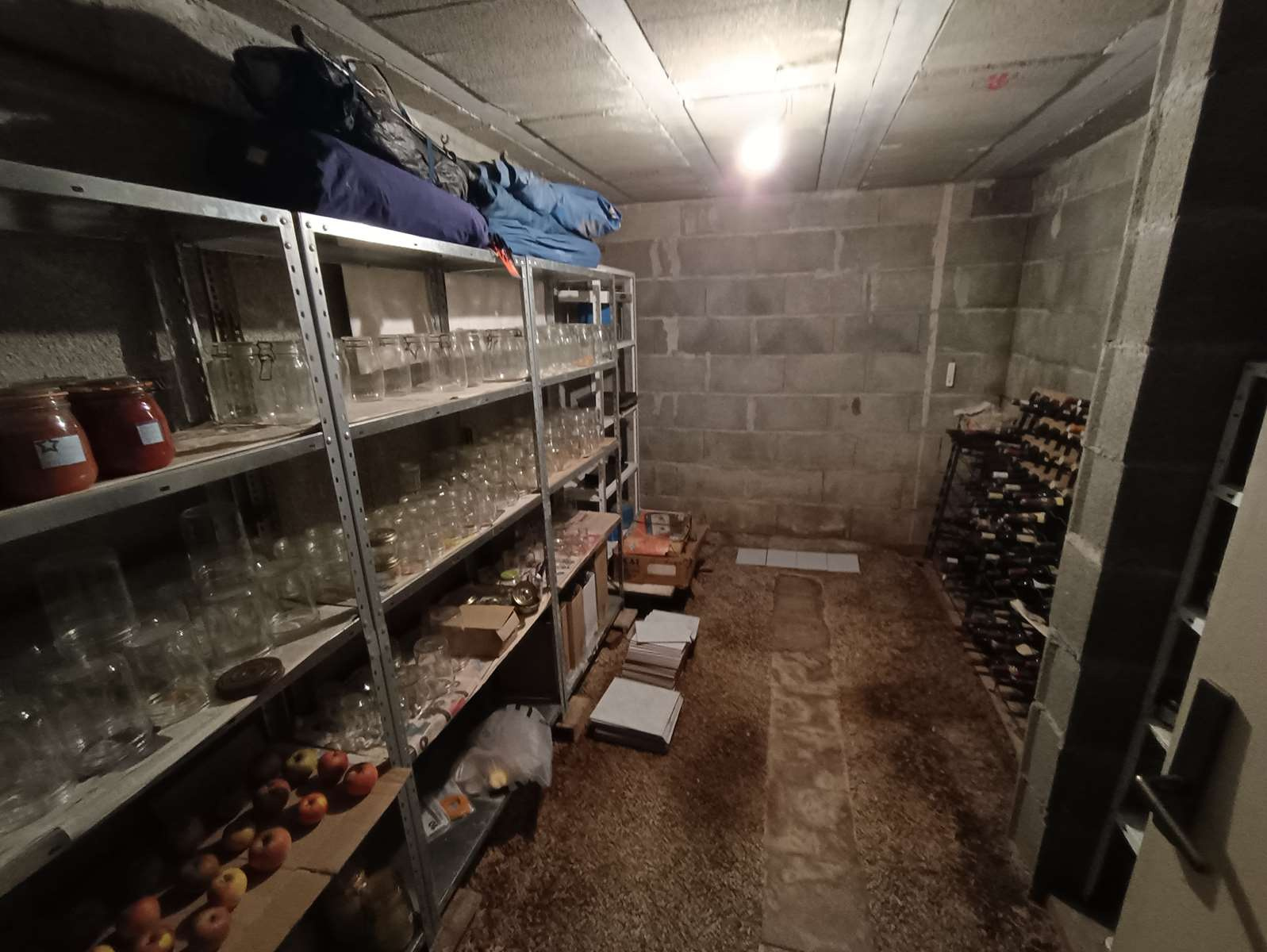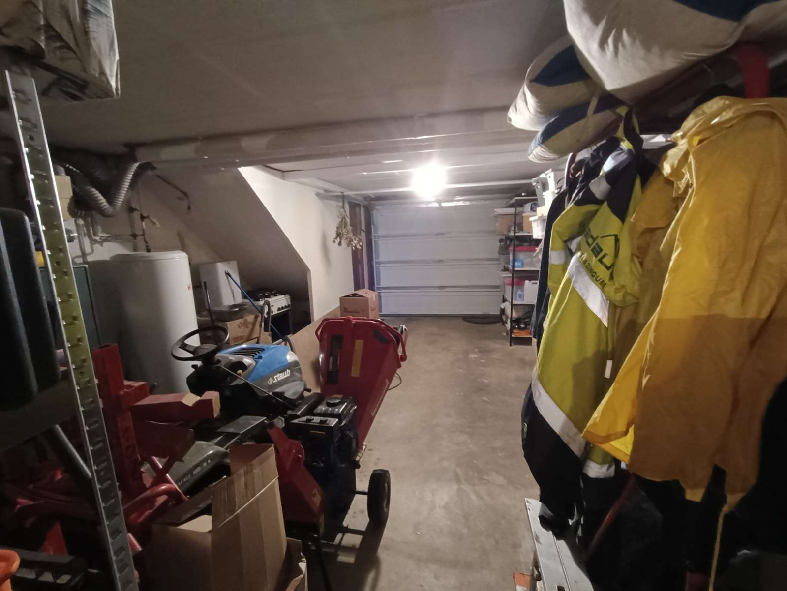 Sous-sol : garage avec porte automatique, chaufferie, cave sur sol en pierre, deux débarras, grande cuisine d’été donnant sur une pièce conviviale, ainsi qu’une salle d’eau.