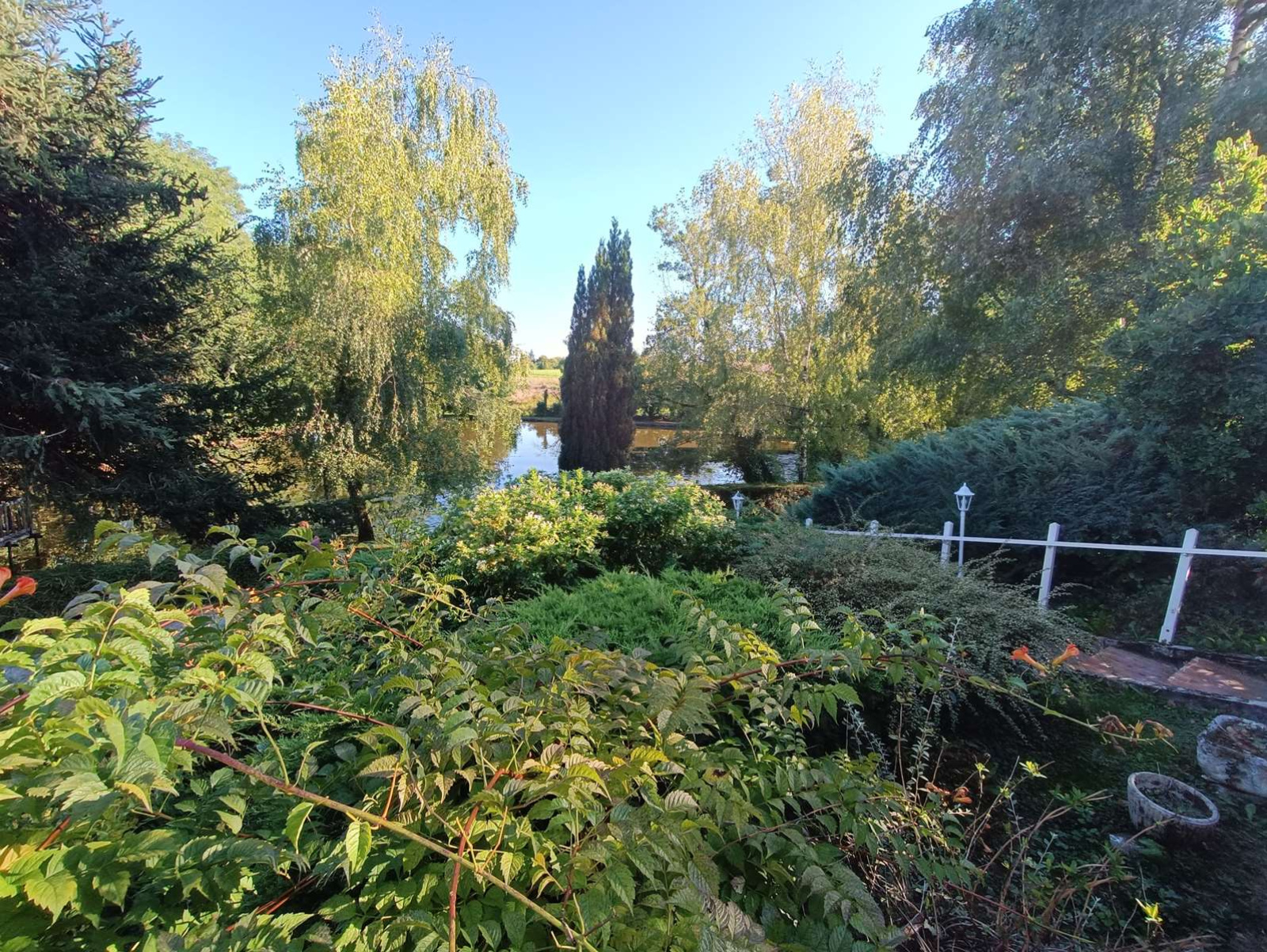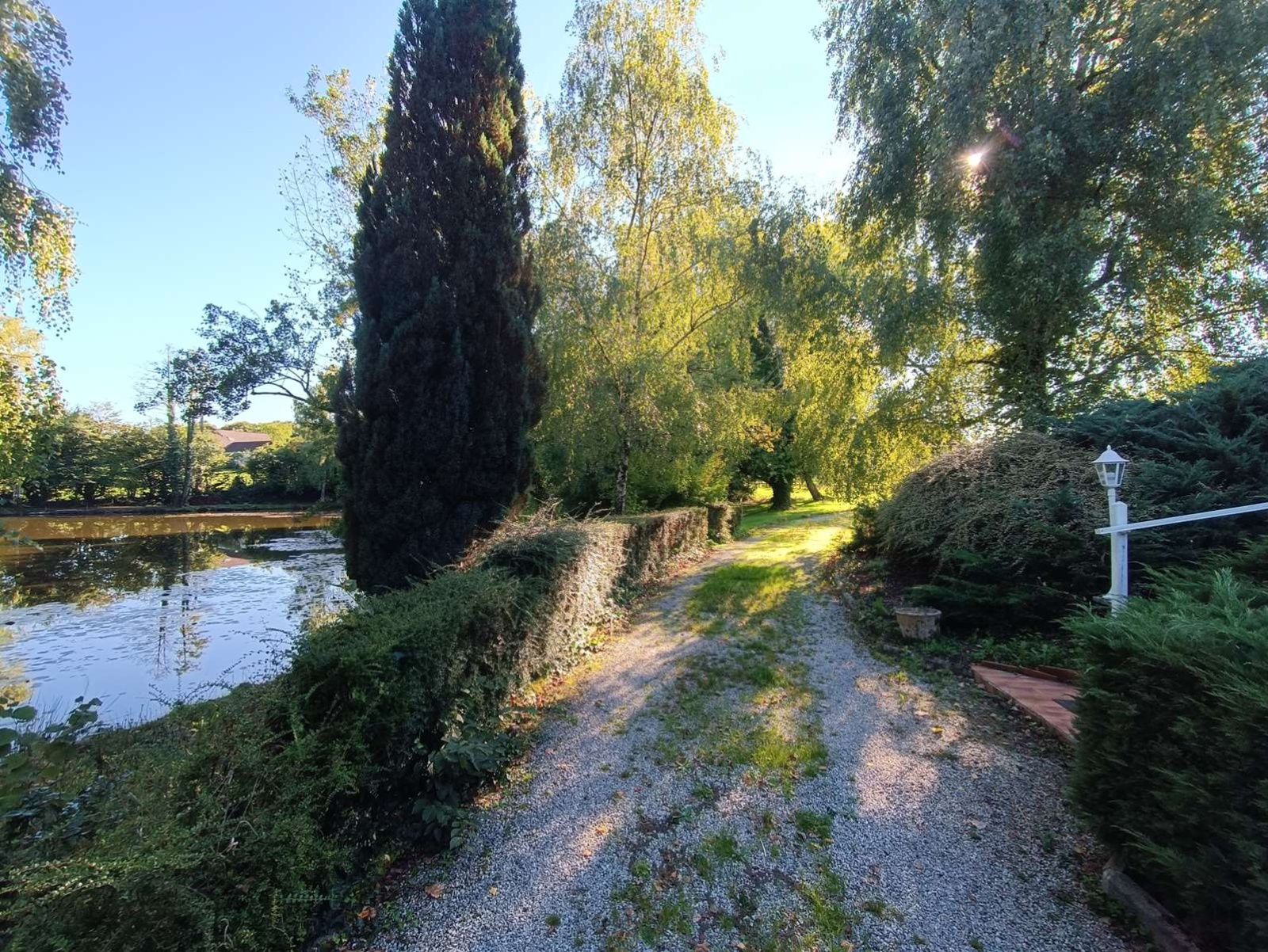 À l’extérieur, vous profiterez d’un magnifique parc arboré et fleuri avec accès par allée à un parking, d’un espace barbecue, d’un verger, d’une dépendance et d’un charmant étang.