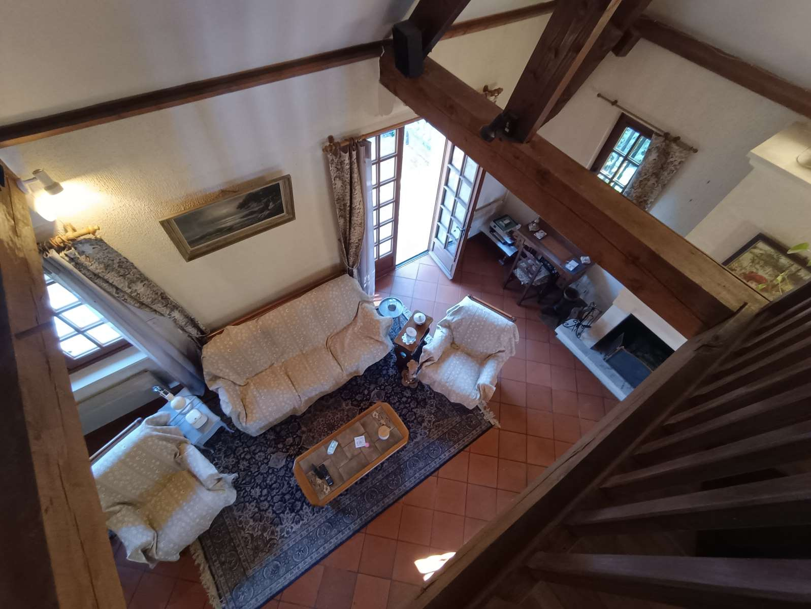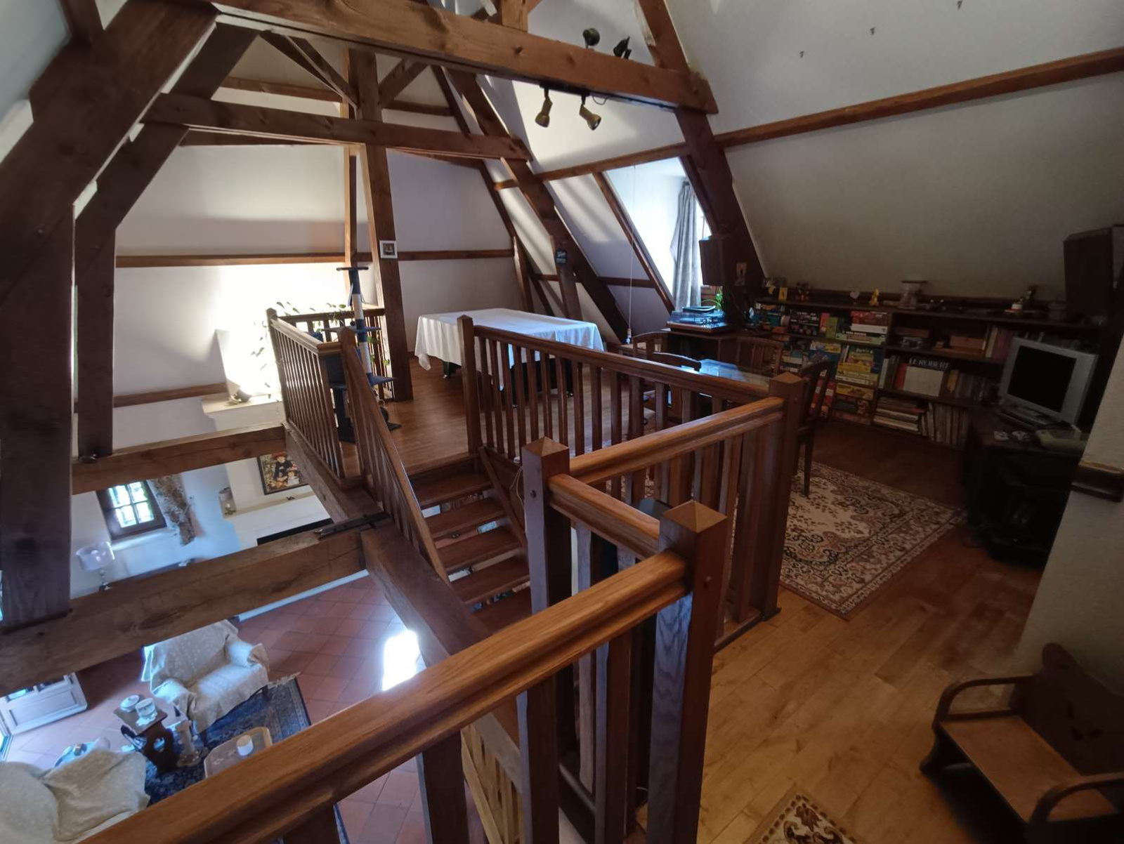 Étage : grande mezzanine lumineuse, chambre supplémentaire, bureau, dressing et WC.
