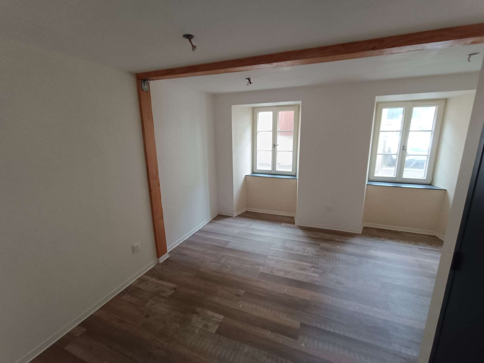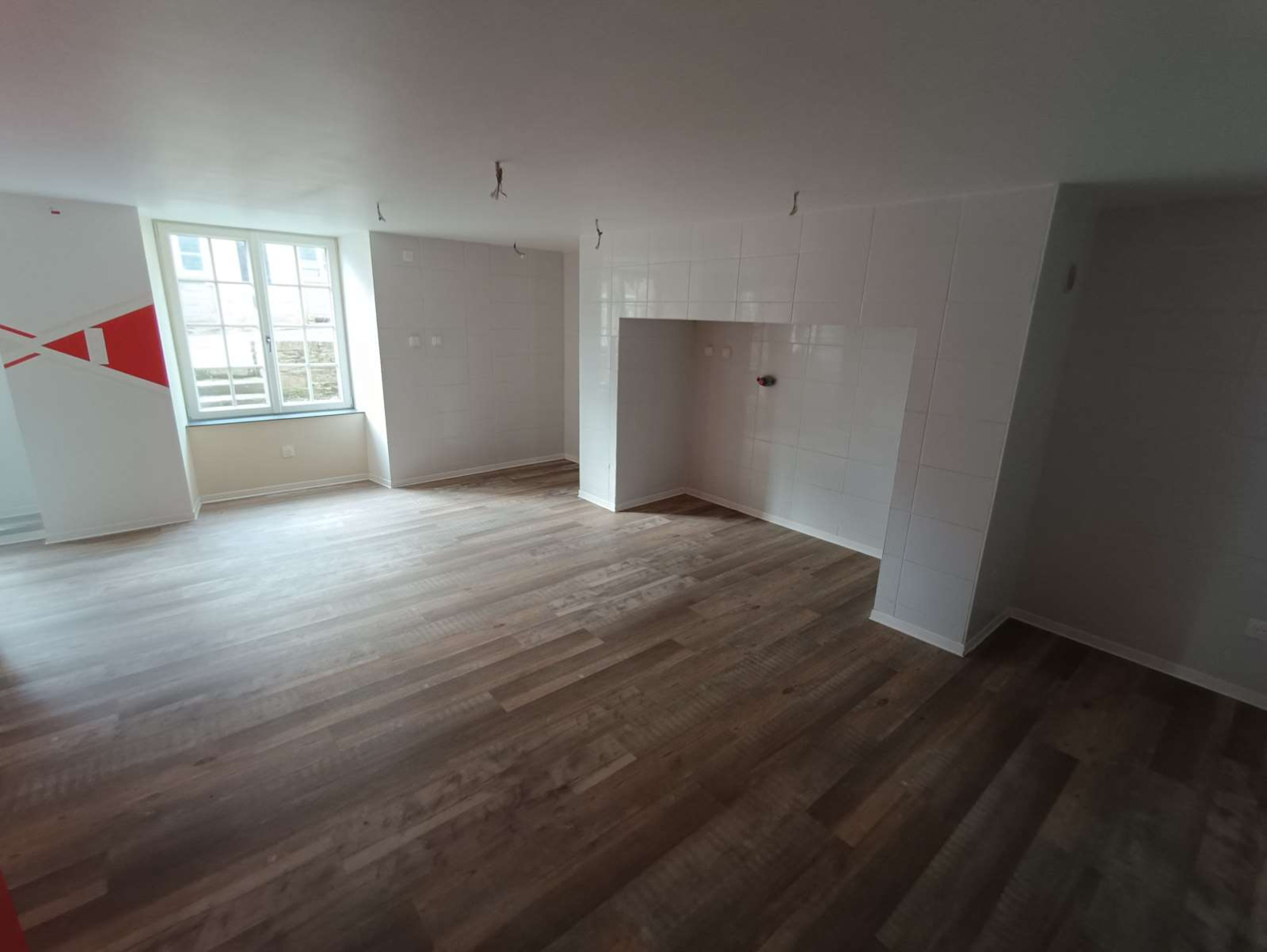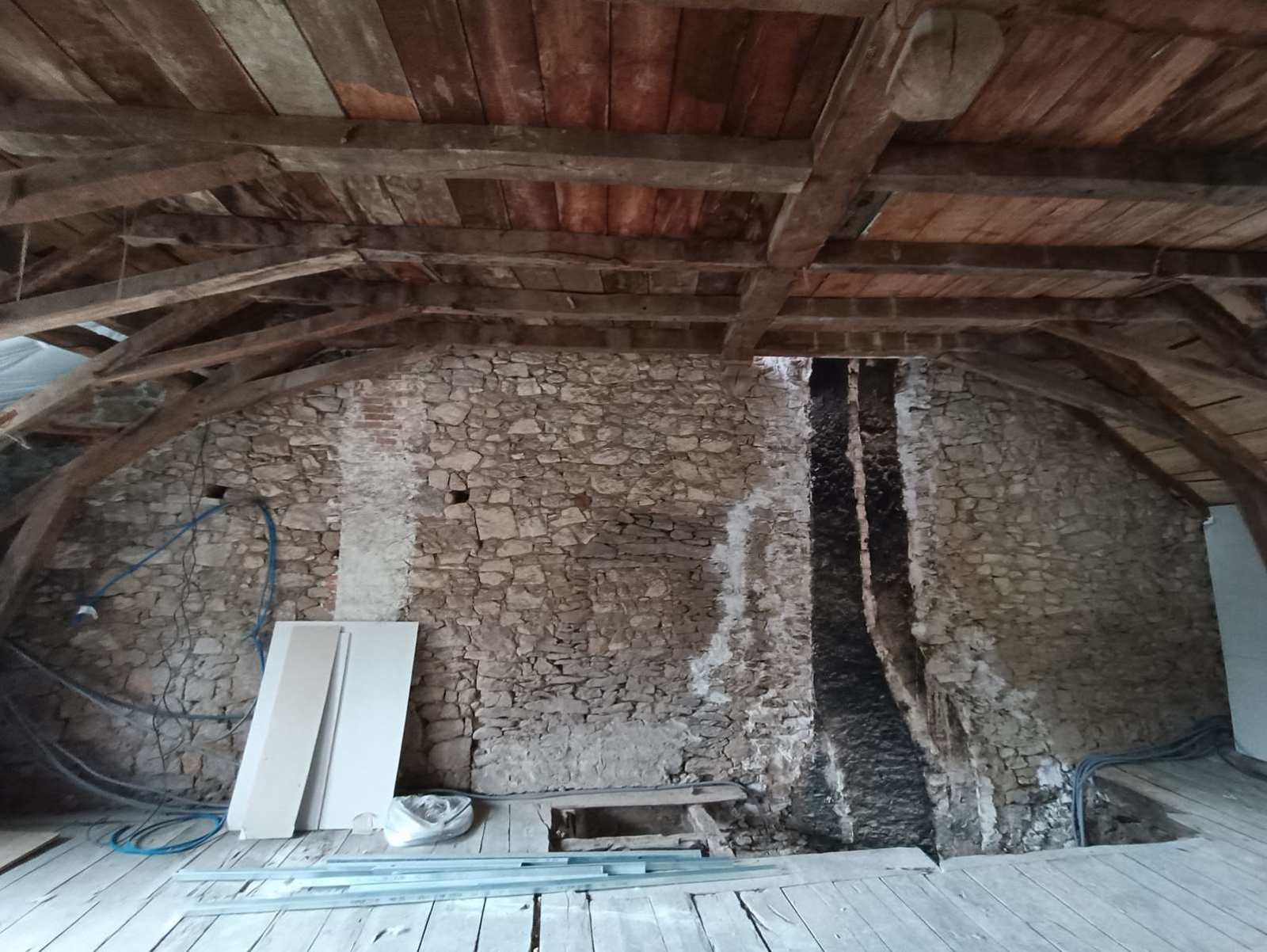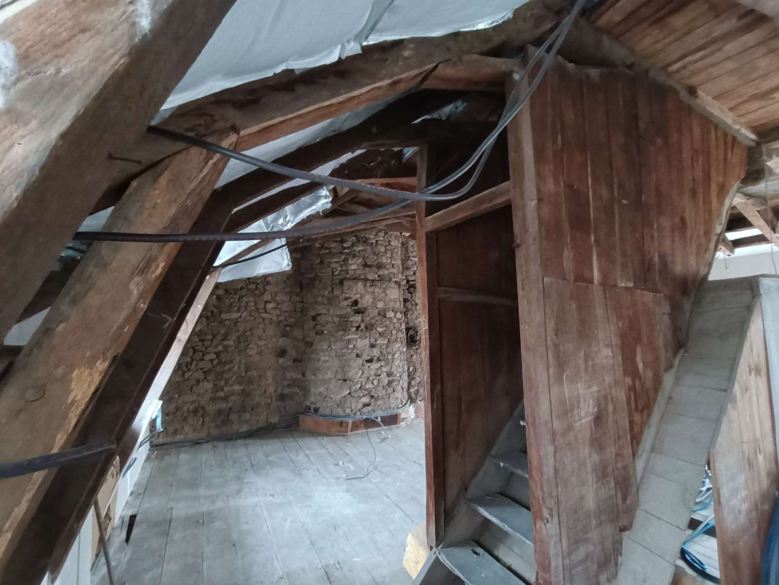 Plateaux équipés de câbles d'alimentation, d’un tableau électrique générale, partiellement isolés avec double vitrage, à finir de rénover.
