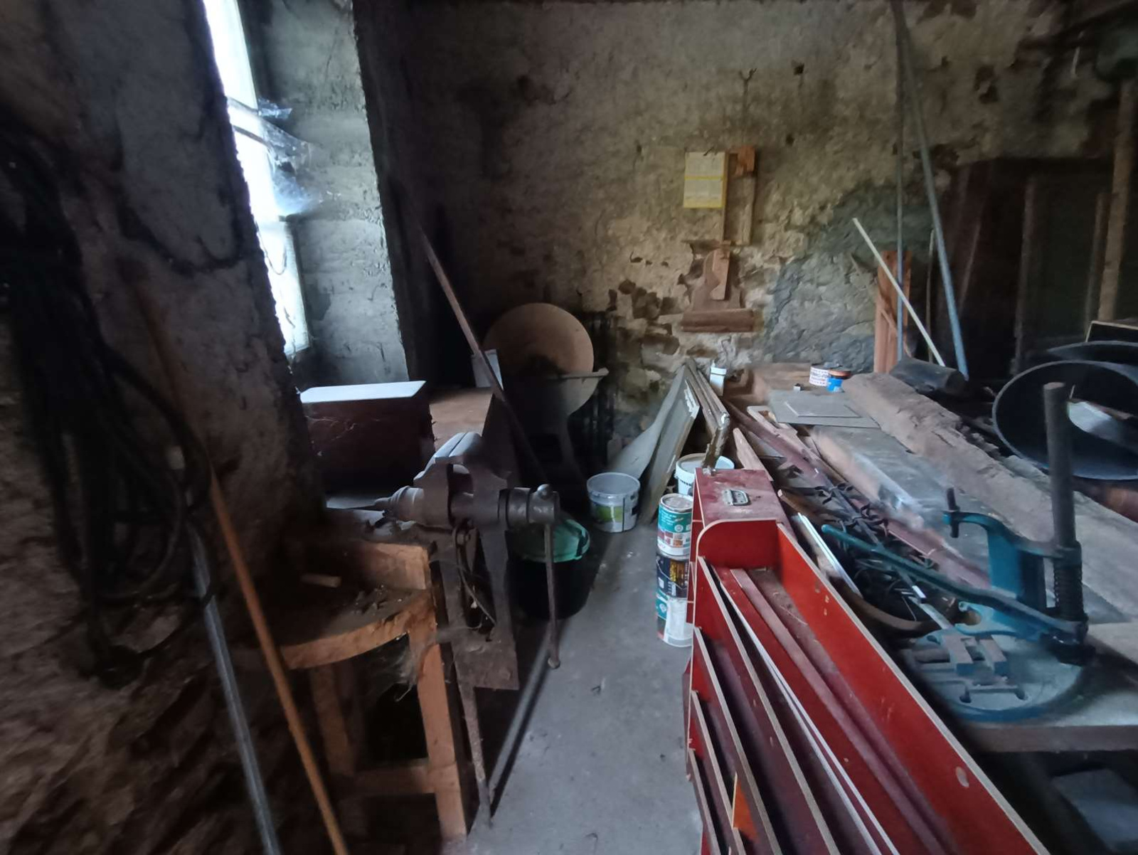Au rez-de-chaussée, vous trouverez un hall d’entrée donnant accès à deux garages spacieux de chaque côté, deux caves offrant de multiples possibilités de rangement et un puits, ajoutant un cachet authentique à la propriété.
