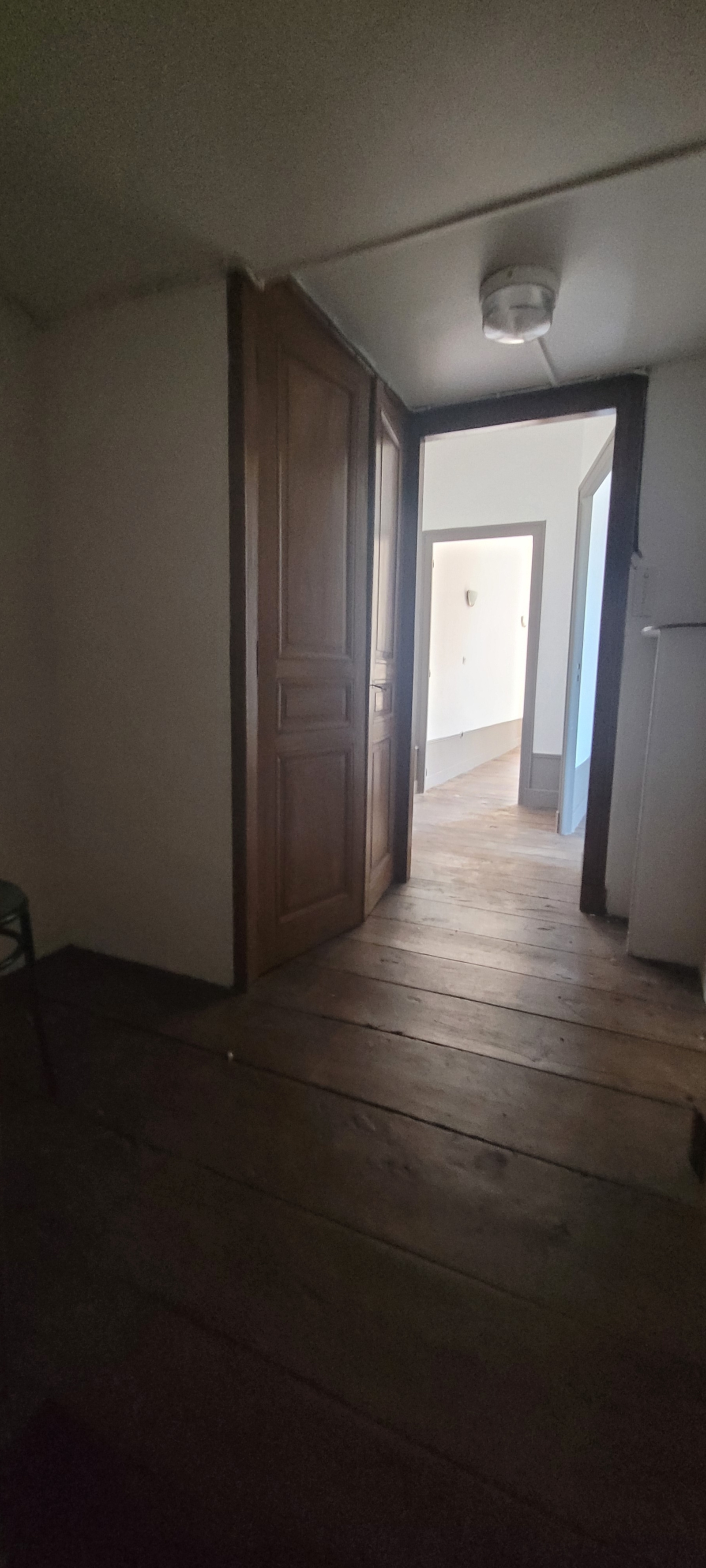 Bienvenue dans l'appartement, celui-ci offre de beaux éléments. Vous y accéder par un escalier indépendant. Pallier, cuisine aménagée , salle à manger spacieuse (14,80m2), Salle de bains et WC. Quelques marches desservent un beau salon avec parquet et balcon (25m2) Palier et escalier accédant au deuxième étage offrant : 2 chambres dont une avec douche et la seconde avec balcon. 2 greniers. Travaux à prévoir. chauffage fuel. Assainissement : tout à l'égout .