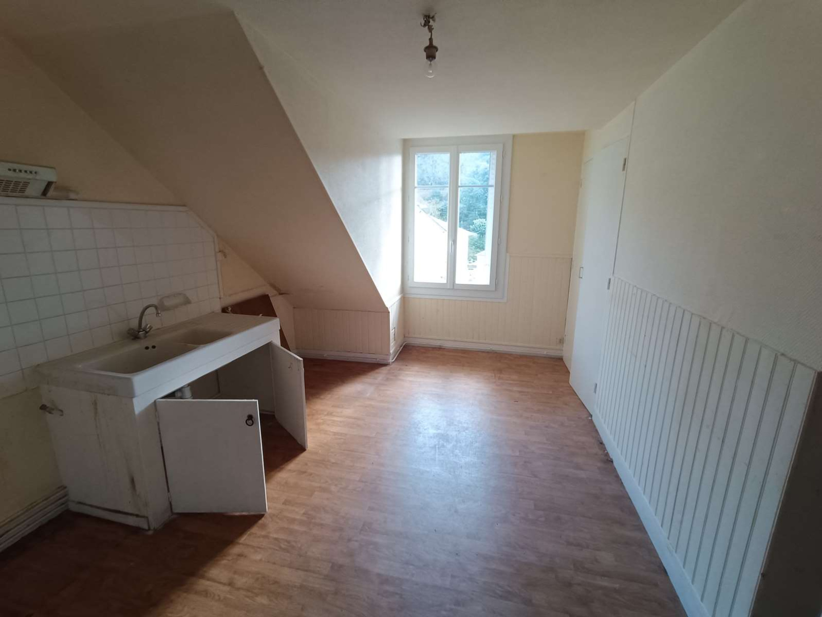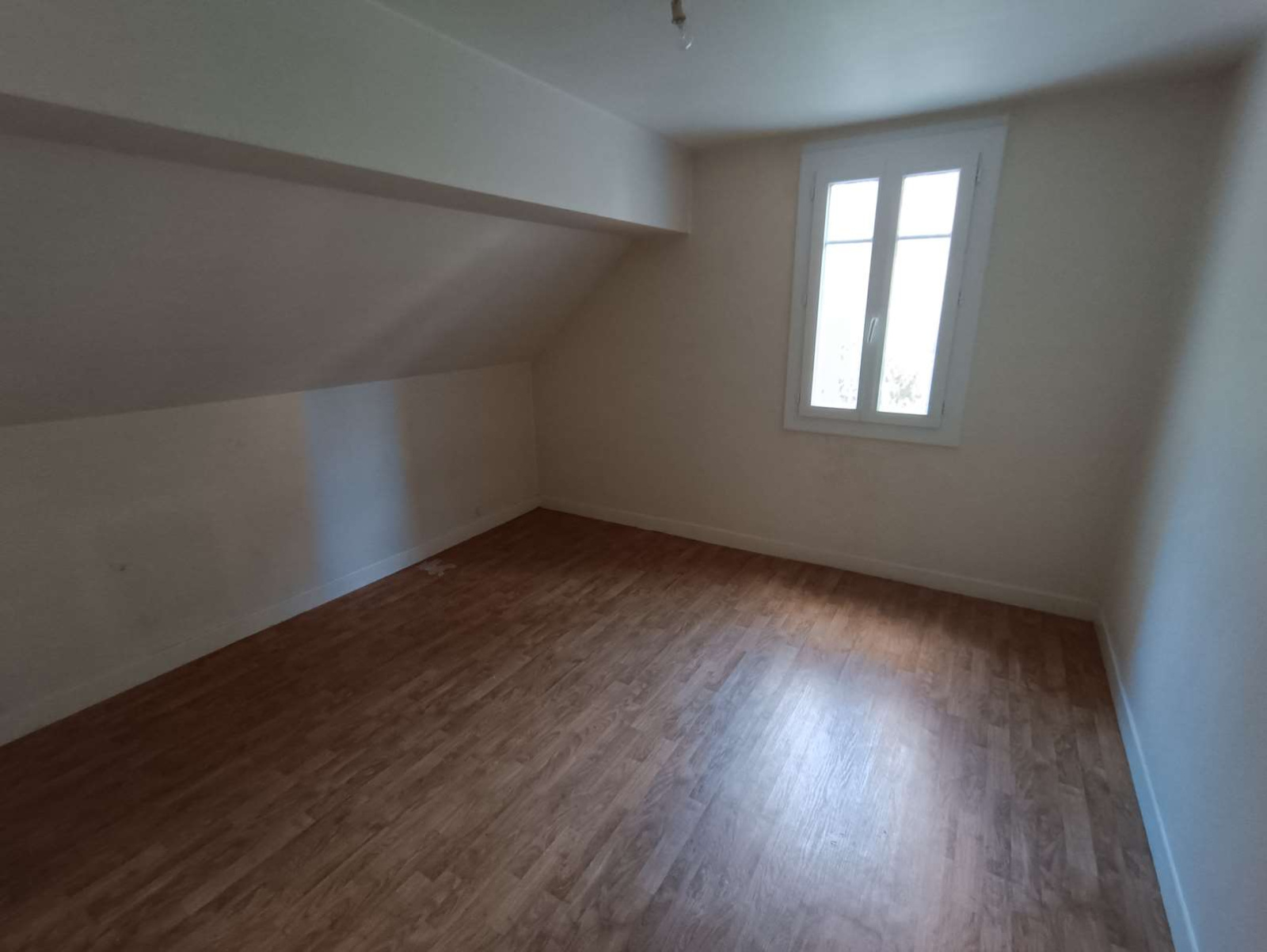 Il est composé de deux chambres mansardées, un couloir avec placard de rangement, une salle de bain, un WC séparé, cuisine séparée, une pièce à vivre chaleureuse.