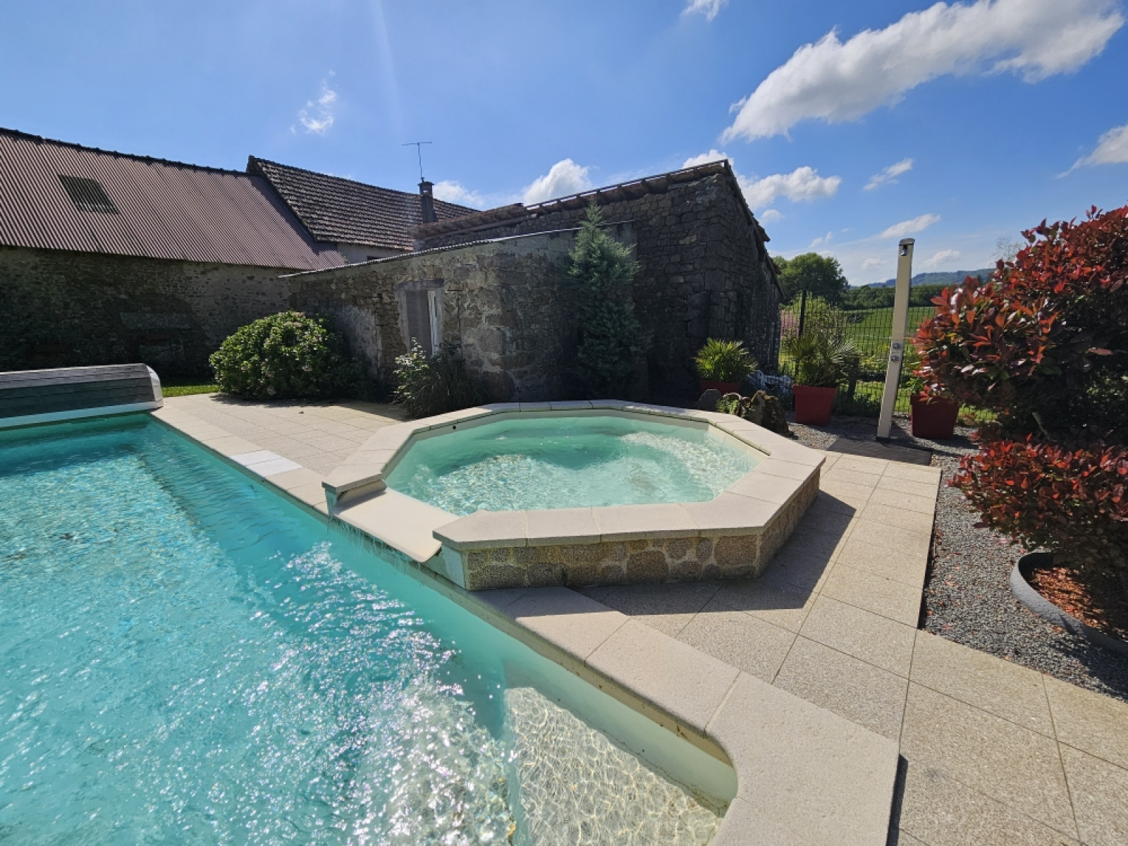 Pour le farniente, cette offre dispose d’une piscine coque chauffée (10x4) avec rideau électrique ainsi qu’un bassin rond à bulles avec assises (3,50 de diamètre), le local technique se trouve à proximité de celle-ci avec une pièce pour rangement matériel de jardin.