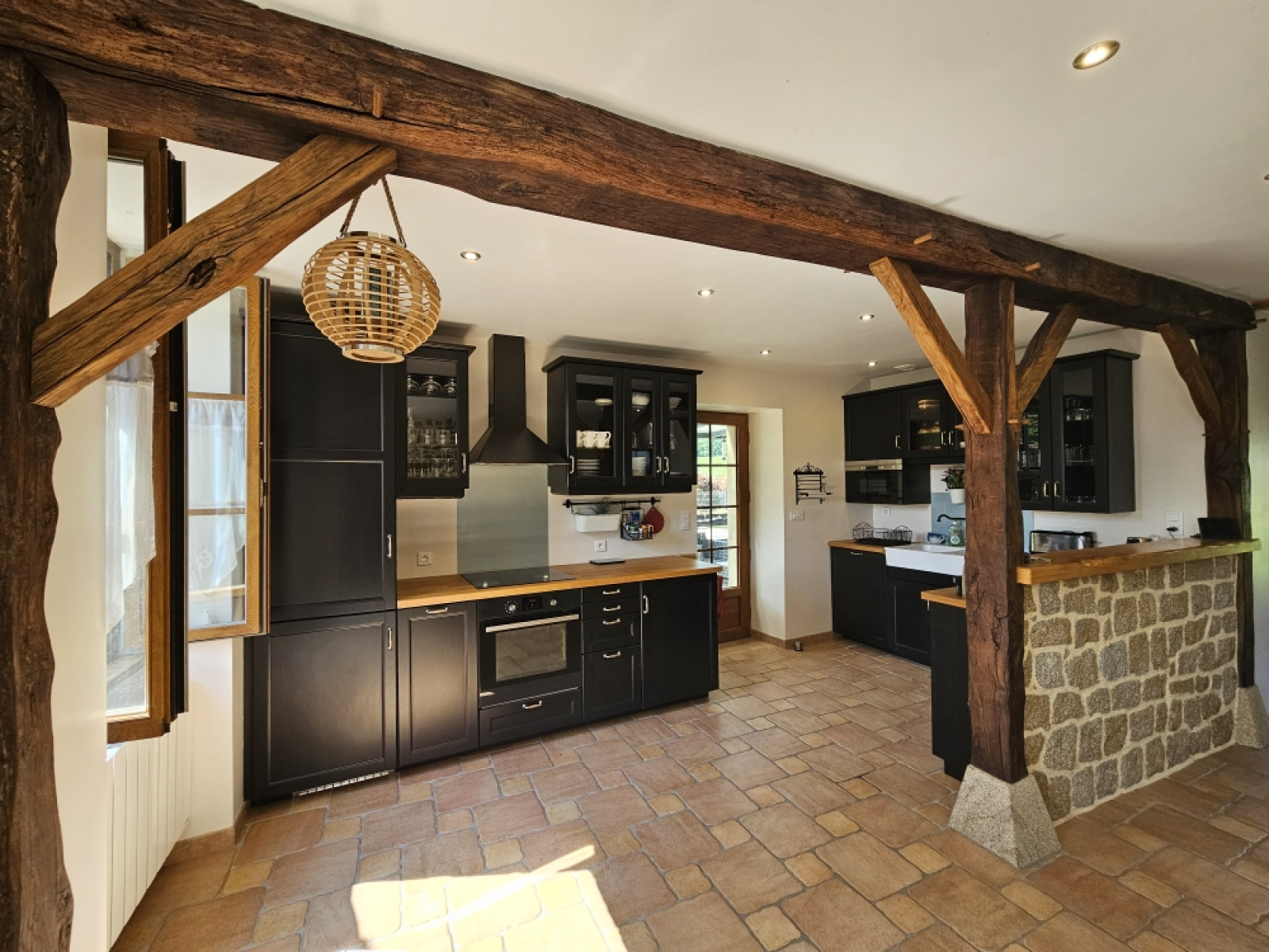 Depuis la pièce de vie, vous pourrez admirer la campagne creusoise à toutes les saisons grâce à sa pergola ALU dallée équipée d’un store latéral électrique ainsi que des jardinières fixes.