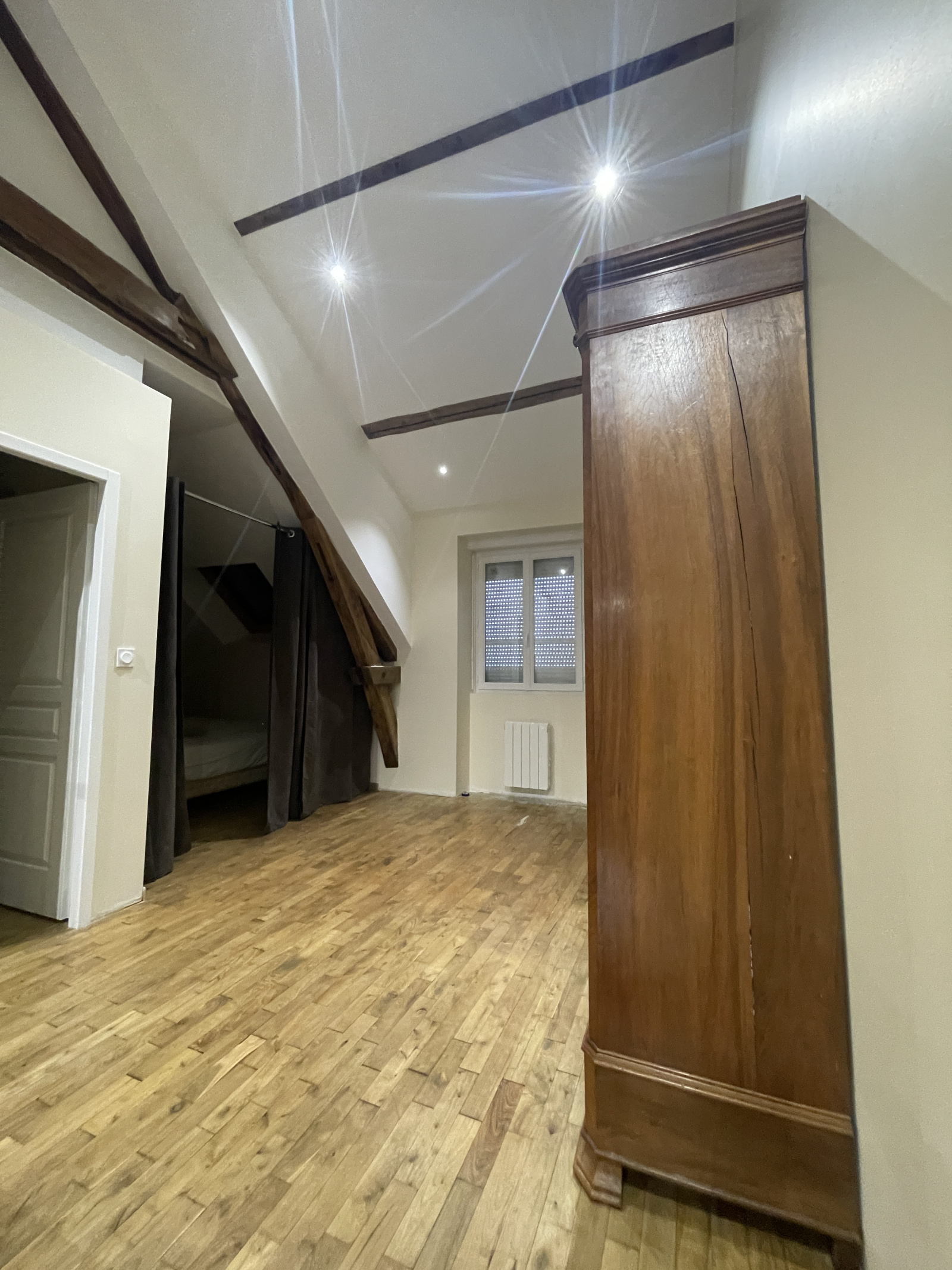 Fenêtres double vitrage PVC Blanc et Volets roulant manuel – Vélux bon état avec volets roulants électriques. Poêle à bois GAUDIN et radiateurs en complément -