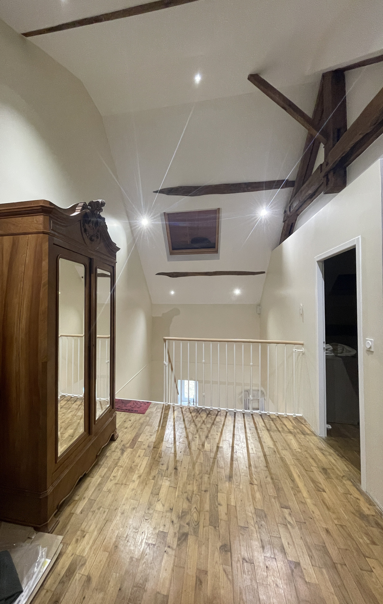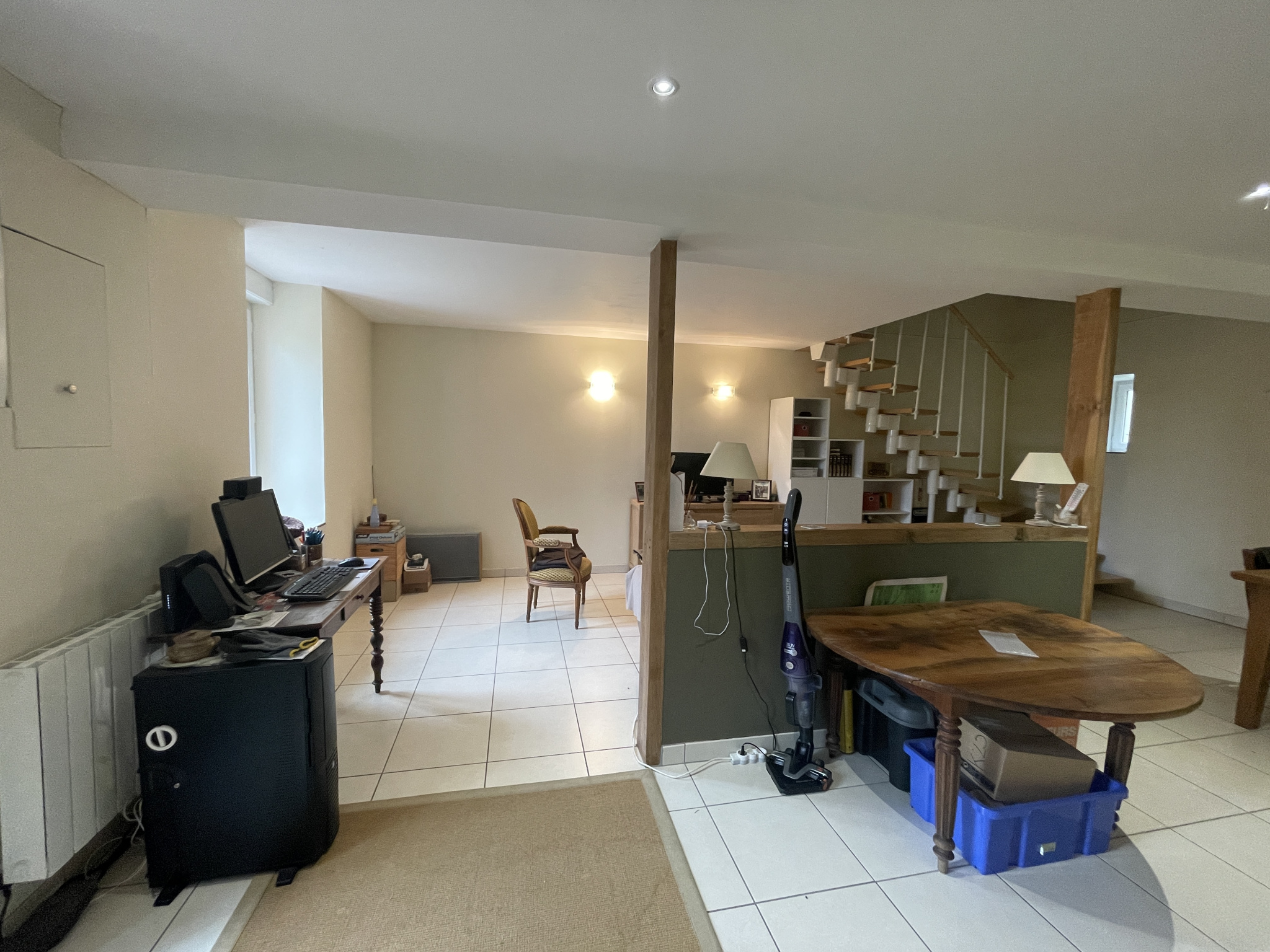 Un bel escalier mène à une pièce palière (coin bureau ou petit salon/Bibliothèque) desservant :