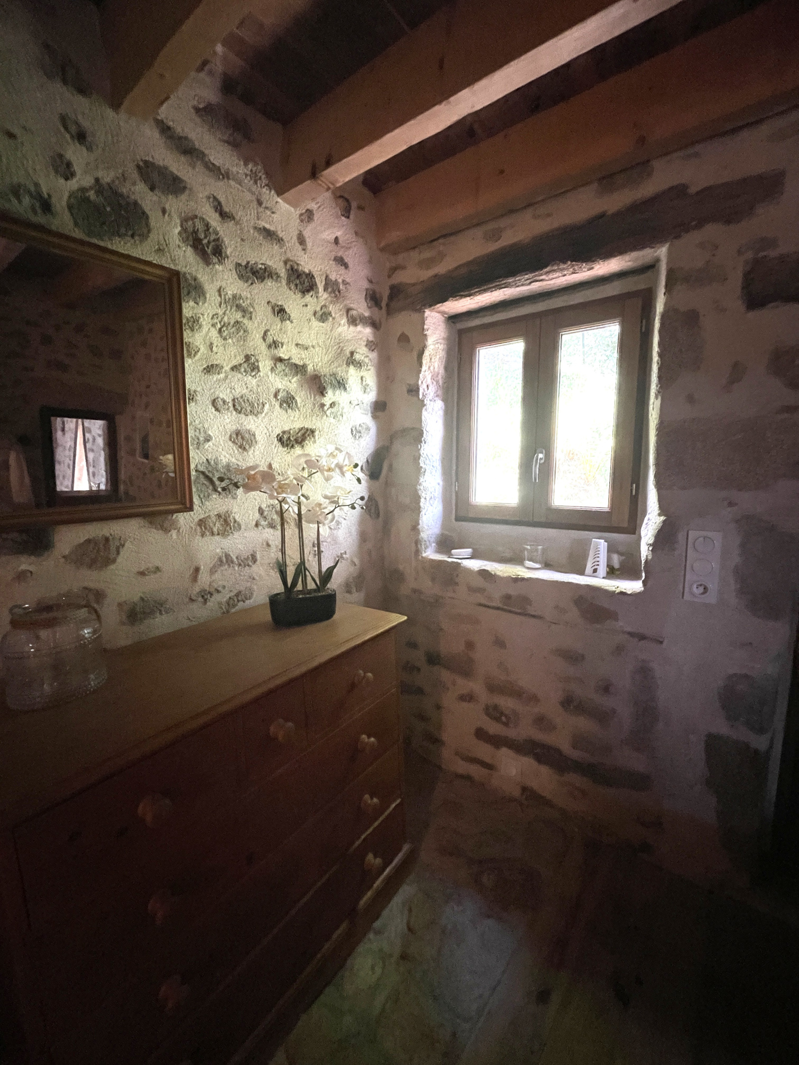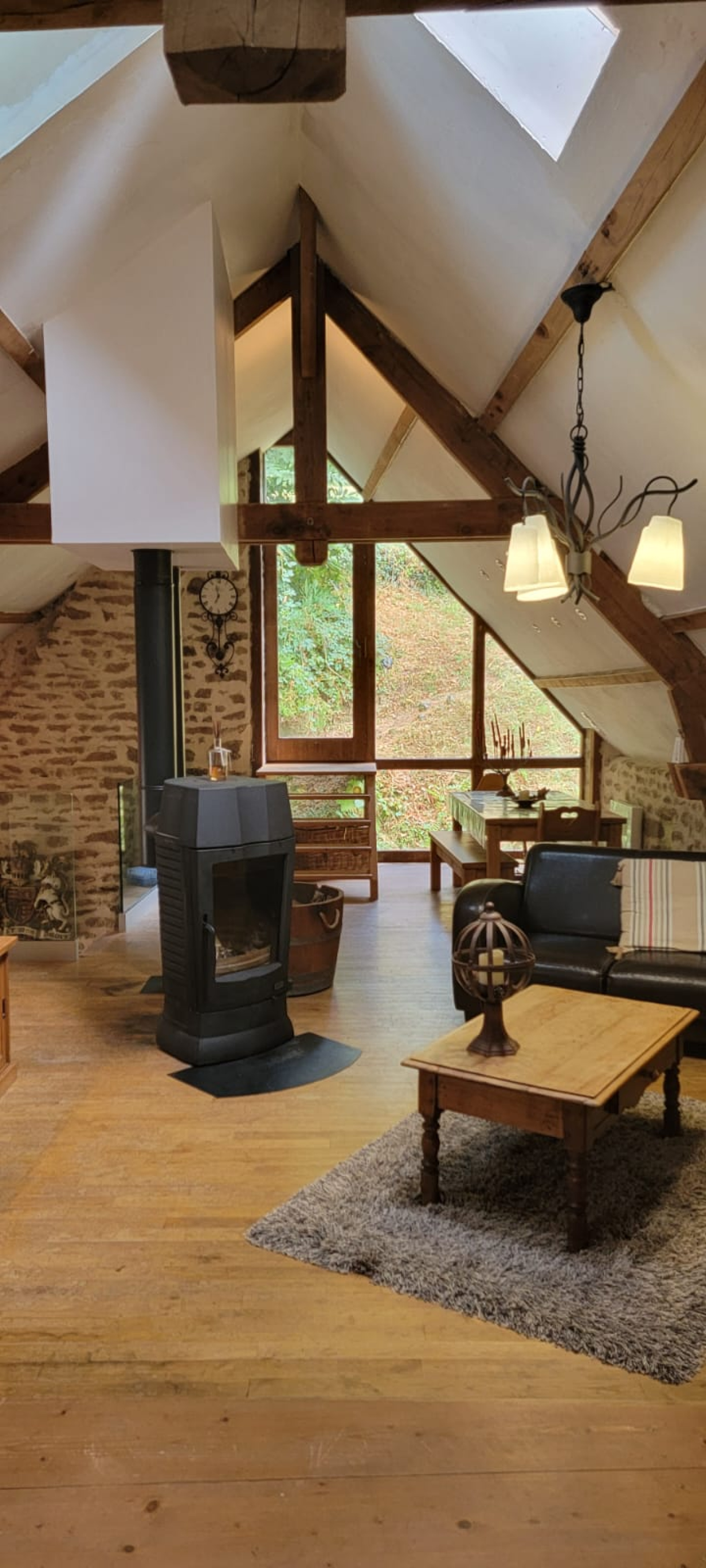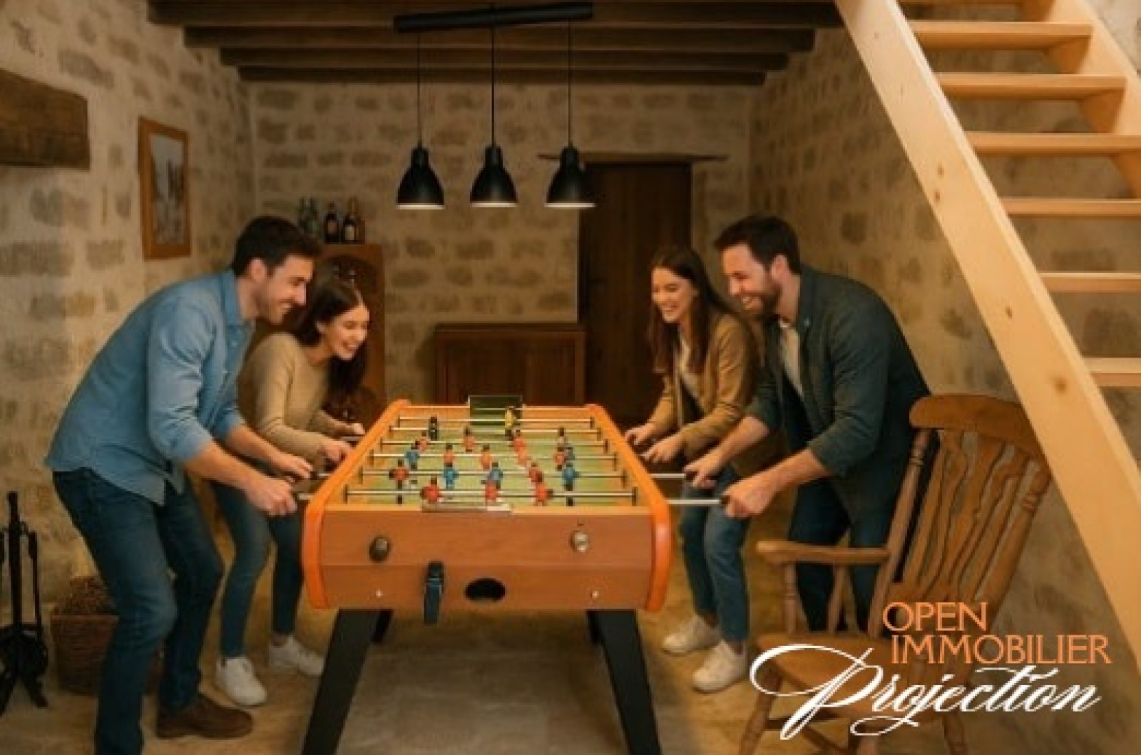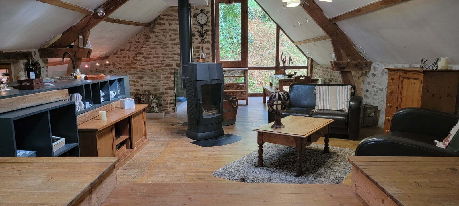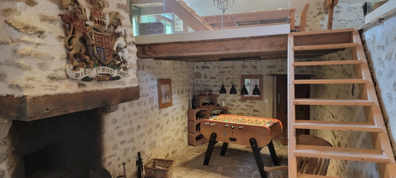 En rez-de-jardin, une pièce en pierres jointées avec cheminée en granit vous accueille pour des barbecues ou apéritifs mémorables, dans une ambiance aussi chaleureuse qu’authentique.