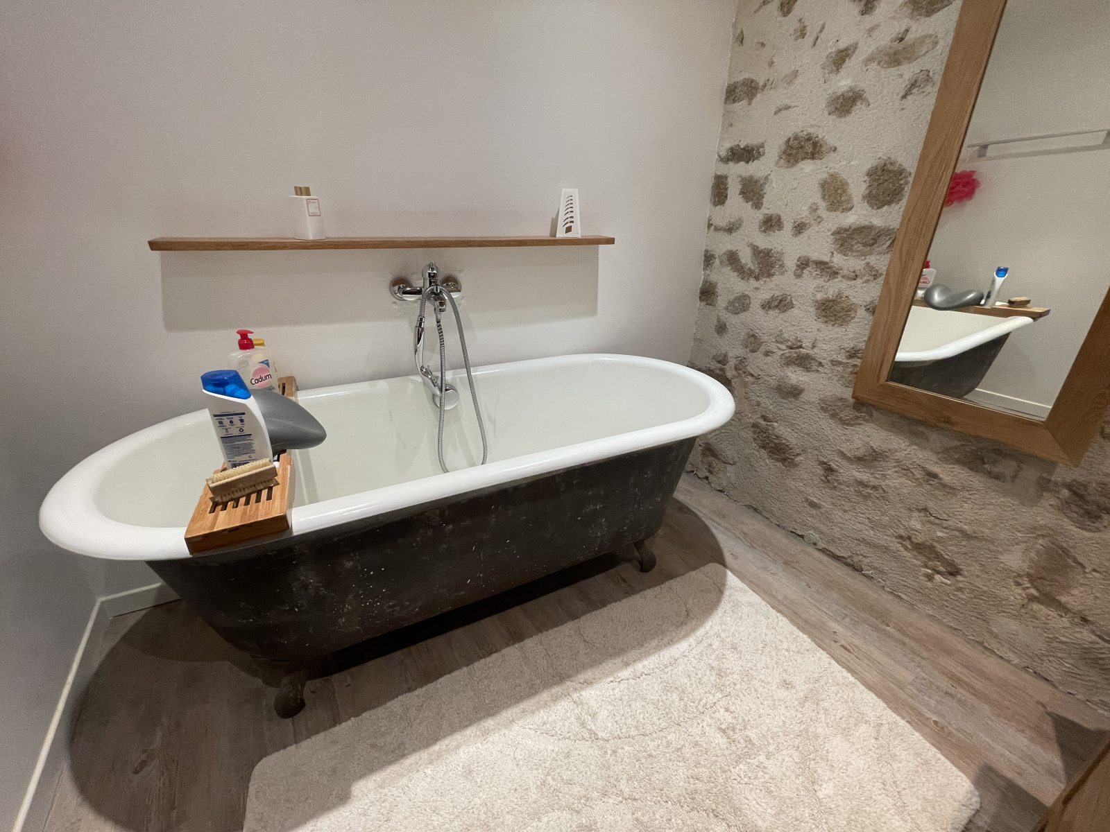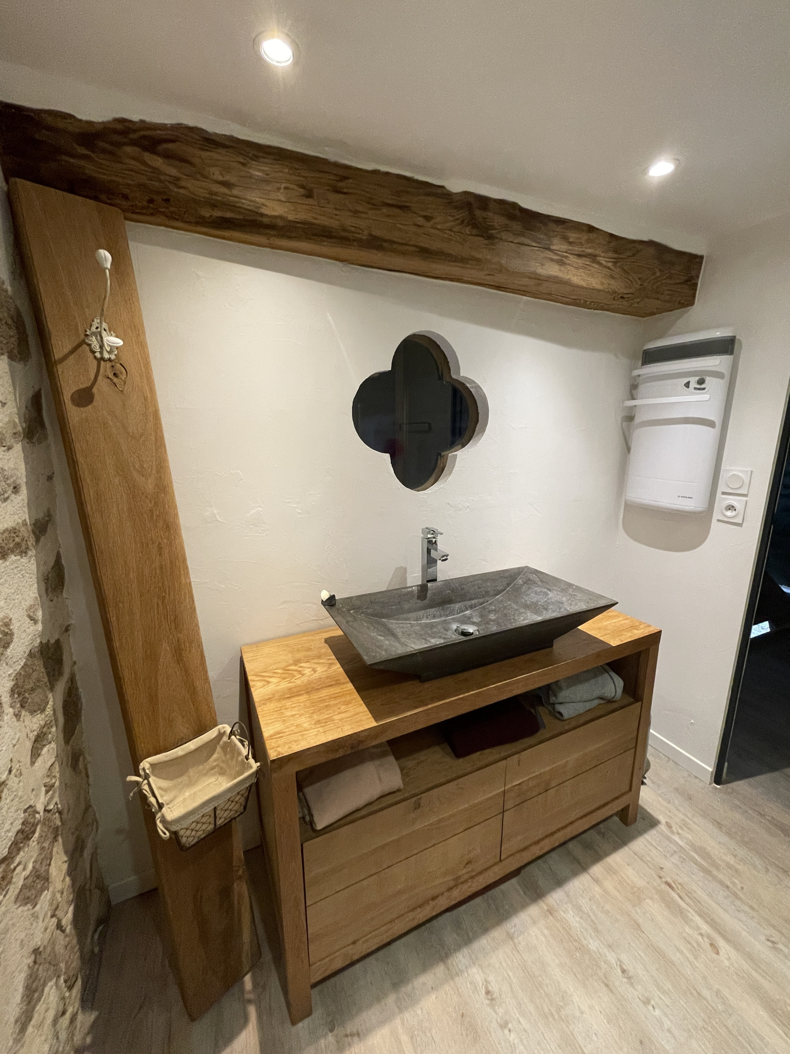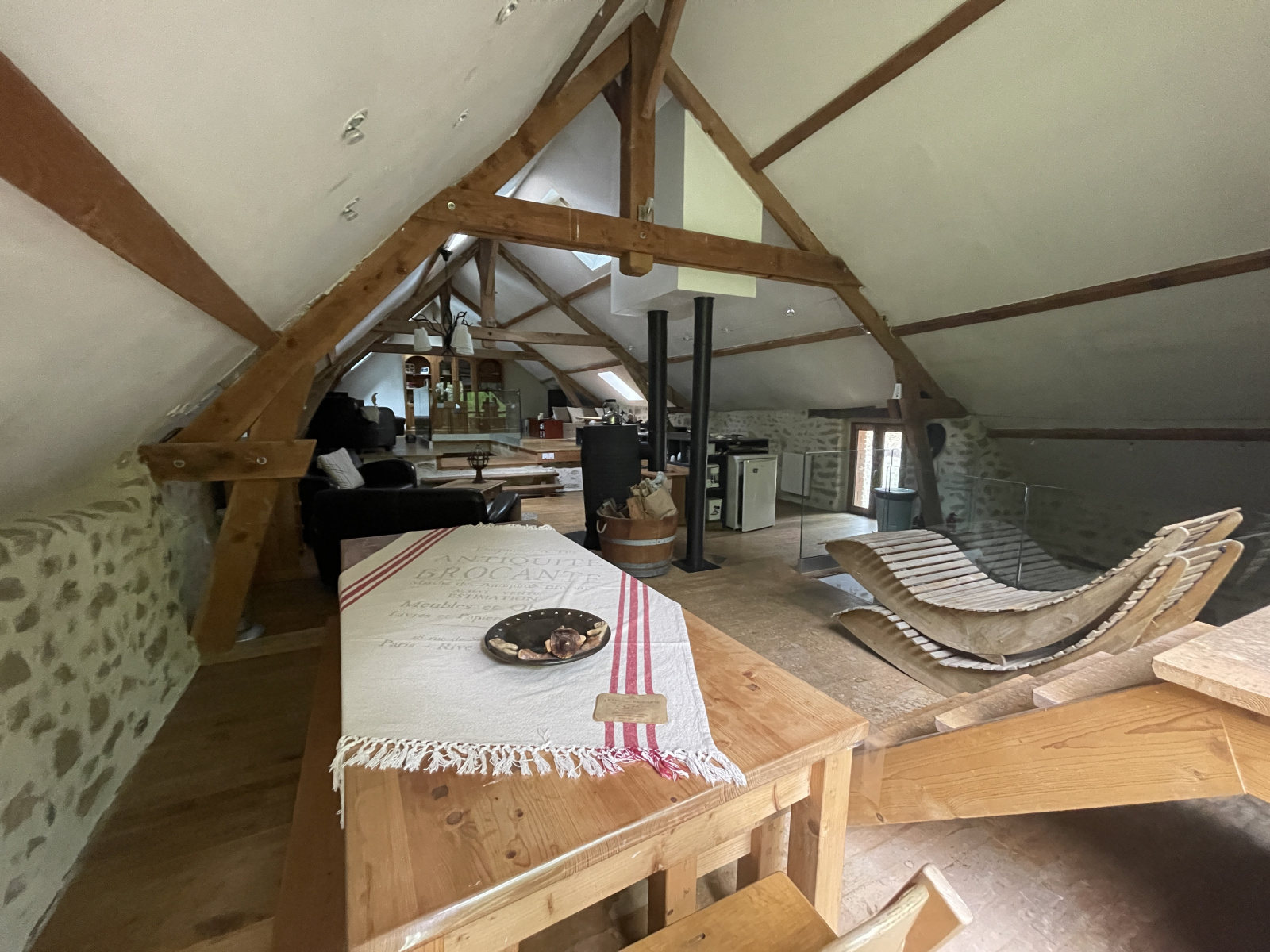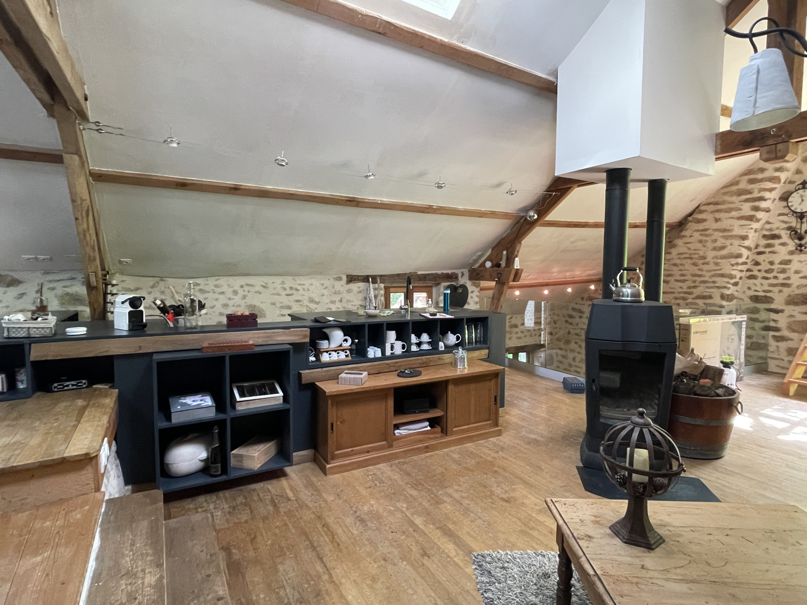 En rez-de-jardin, une pièce en pierres jointées avec cheminée en granit vous accueille pour des barbecues ou apéritifs mémorables, dans une ambiance aussi chaleureuse qu’authentique.