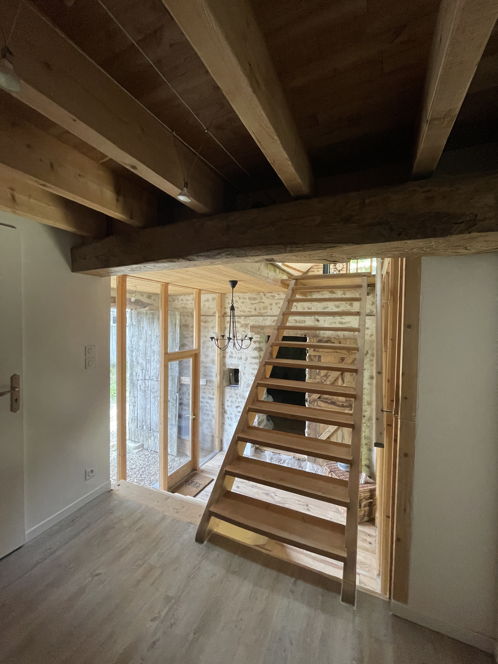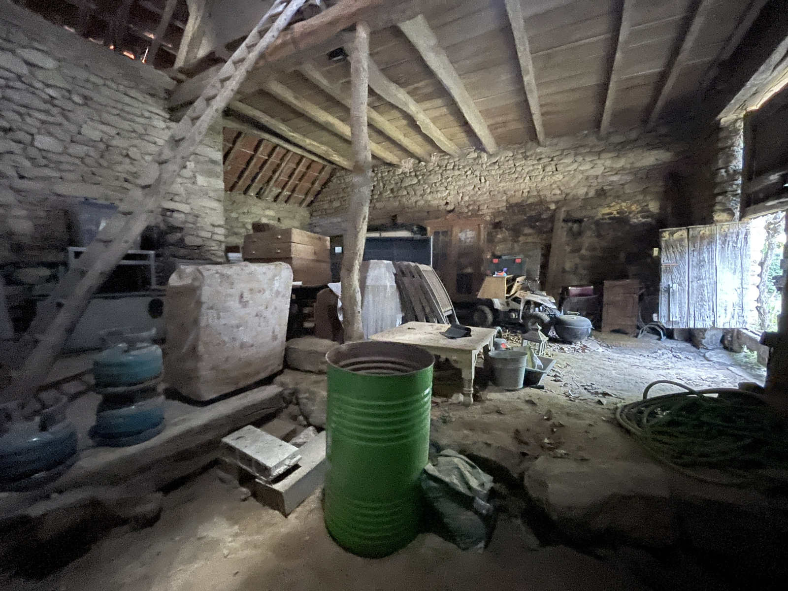 En complément, deux granges mitoyennes aux beaux volumes encadrent une cour intimiste. De nombreuses possibilités s’offrent à vous : atelier, extension, espace de stockage ou projet artistique.