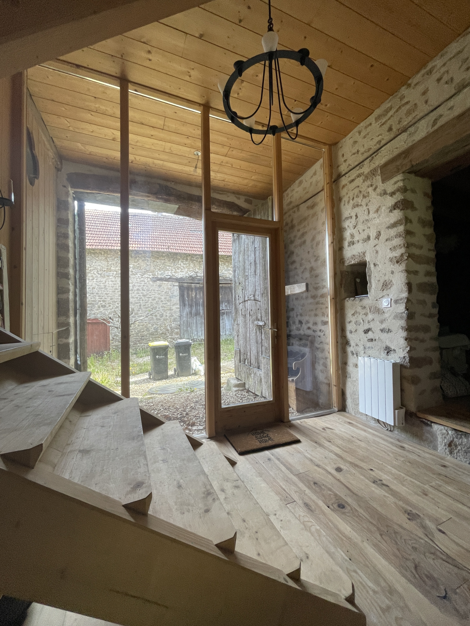 Côté technique : double vitrage, deux poêles à bois, radiateurs électriques connectés, assainissement individuel, réseau fibre, présence d’arbres fruitiers.