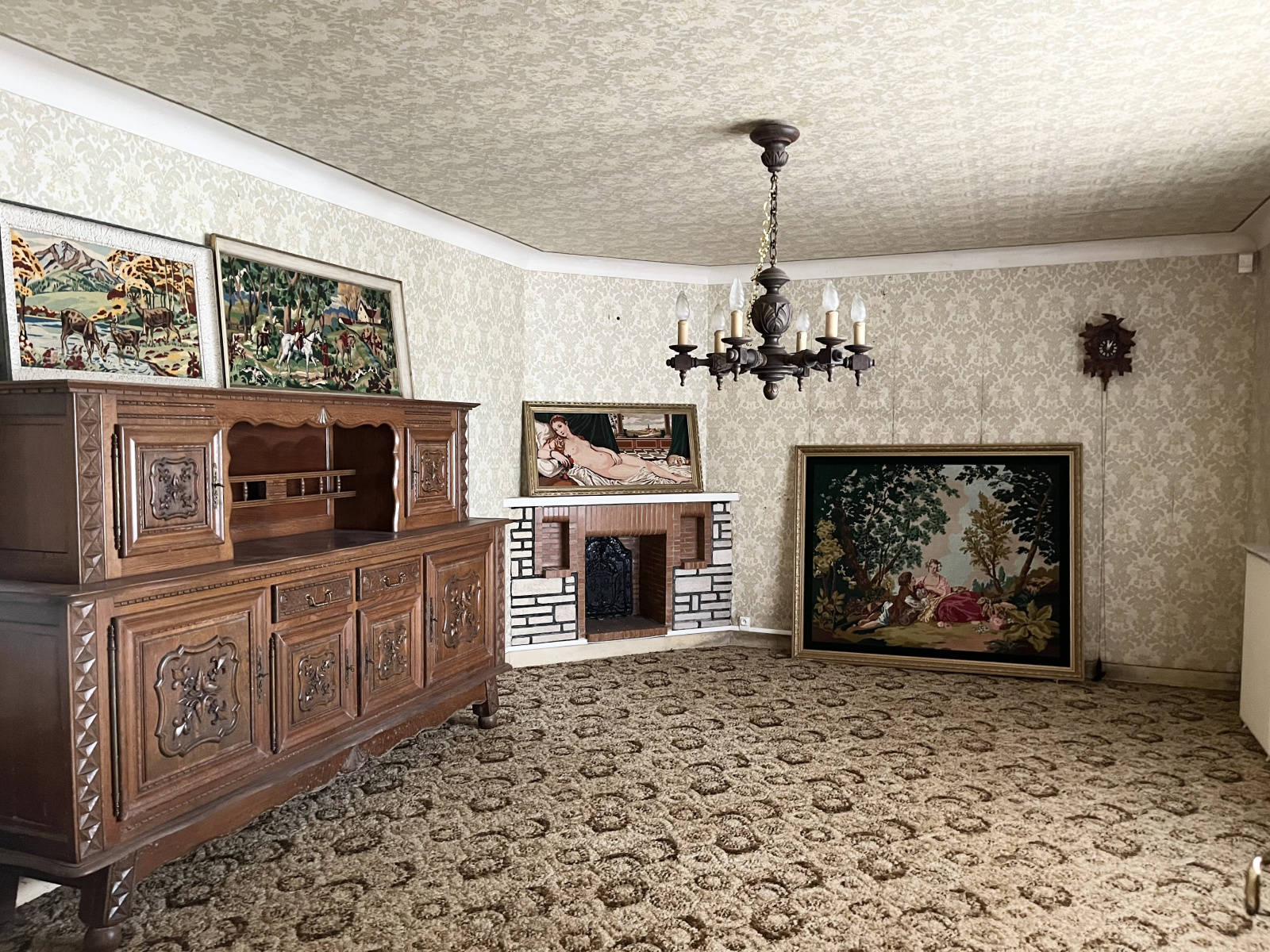 - Salon chaleureux d'environ 26 m² avec cheminée
