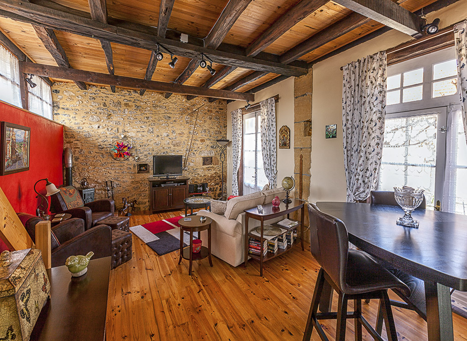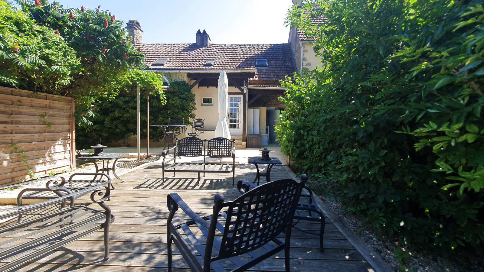 UN BIEN D'EXCEPTION"....Là , tout n'est qu'ordre et beauté, Luxe , calme et volupté...."Ce refrain emprunté au poète Baudelaire, reflète parfaitement Le ressenti lors de la visite de ce bien d'exception .Cachés par des îlots de verdure, entourés par milles fleurs odorantes et variées, de vastes bâtiments anciens tous rénovés en pierre de taille et au style du pays, harmonieusement répartis sur une magnifique propriété de 5600m2 , comprennent une maison d'habitation , 2 gîtes et une grange à aménager . Dans un calme apaisant au milieu d'une nature à nulle autre pareille , c'est un régal des yeux et des sens !La maison d'habitation et ses terrasses avec vue magnifique, se compose au rez de chaussée avec tout le confort exigé, d'une cuisine aménagée , d'une vaste salle à manger, d'un salon,d'un wc à l'étage 2 chambres avec 2 salles d'eau avec une toilette dans chacune .La poêle a pellet , les poutres apparentes et le mobilier contemporain , apportent un charme évident.Au rez de chaussée du plus grand gîte agréablement meublé et décoré,on peut trouver une chambre, une salle d'eau , deux grand salon, une salle à manger et une cuisine.