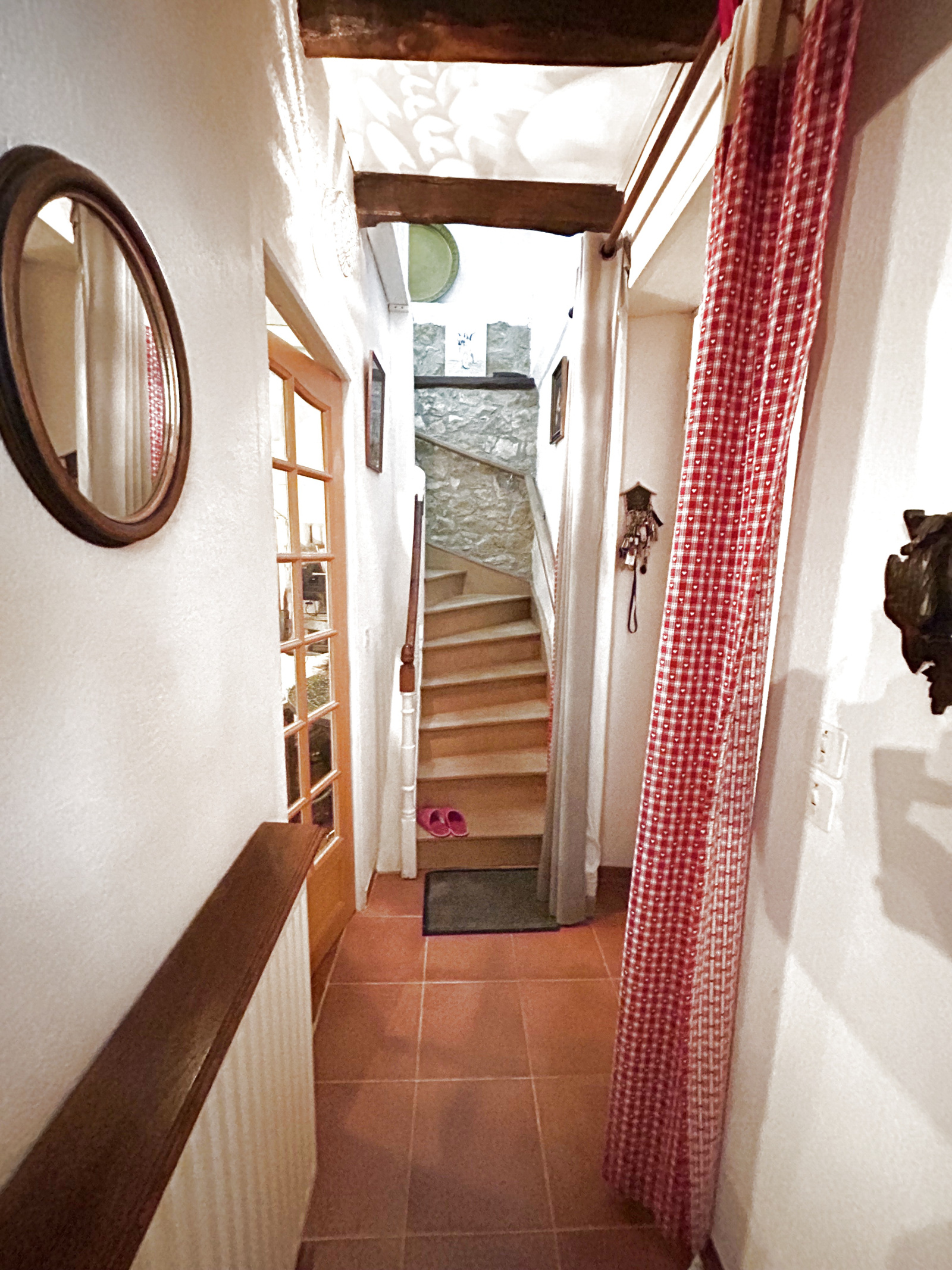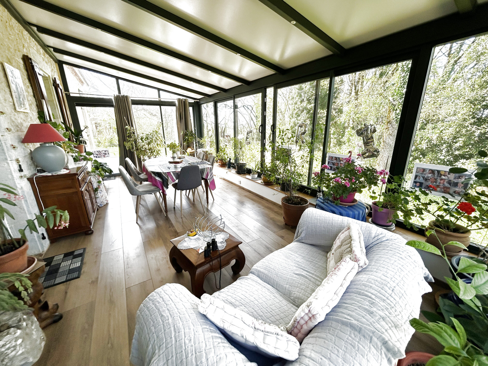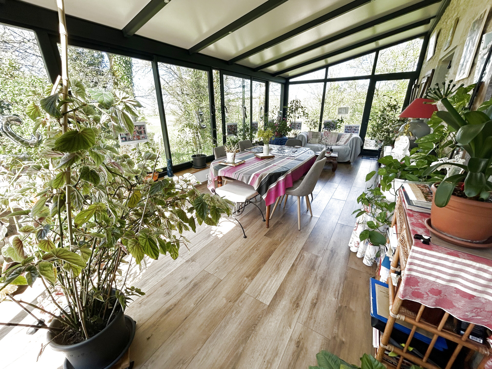 Elle se compose en RDC d'une entrée, une cuisine aménagée est équipée, une salle à manger, un salon avec cheminée, une chambre avec dressing (avec évacuation prévue pour création salle d'eau), un cellier/chaufferie et un WC. Une véranda récemment construite complète ce RDC et offre un bel espace de vie lumineux ouvert sur la nature.