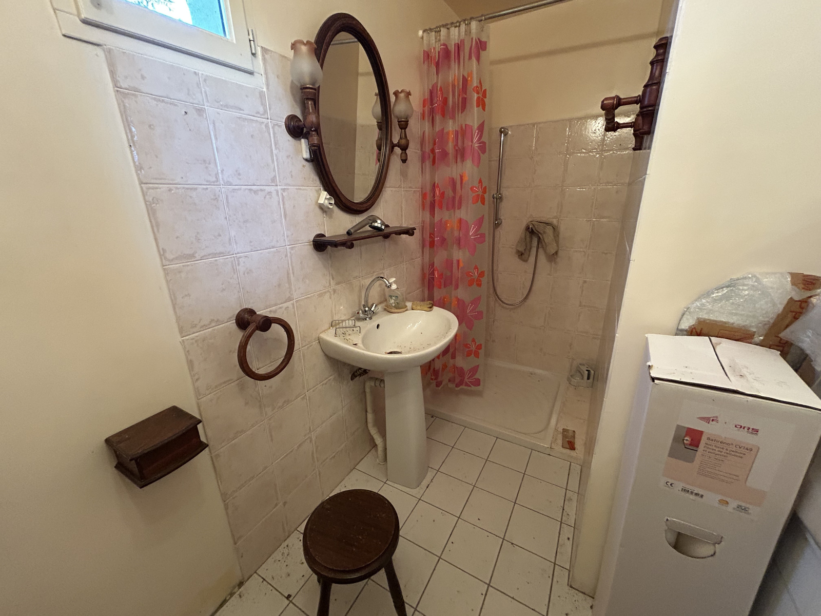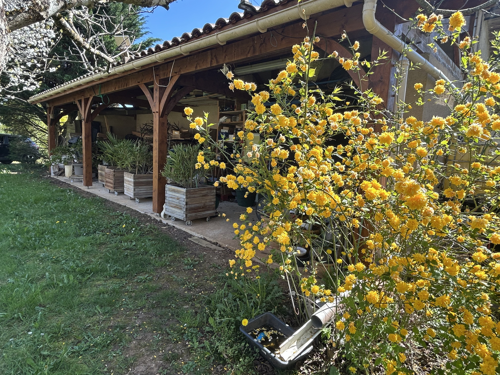 Une dépendance de 50 m² au sol avec garage complet au sous-sol, à l'étage un espace atelier et un studio avec sa salle d'eau.
