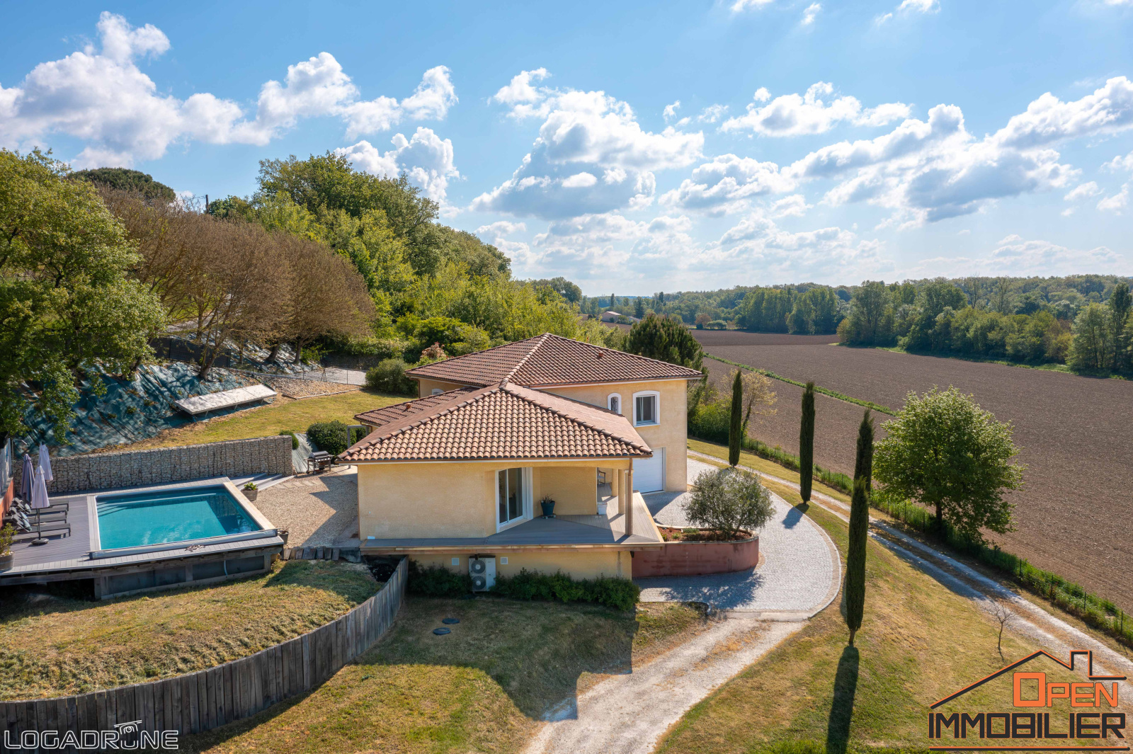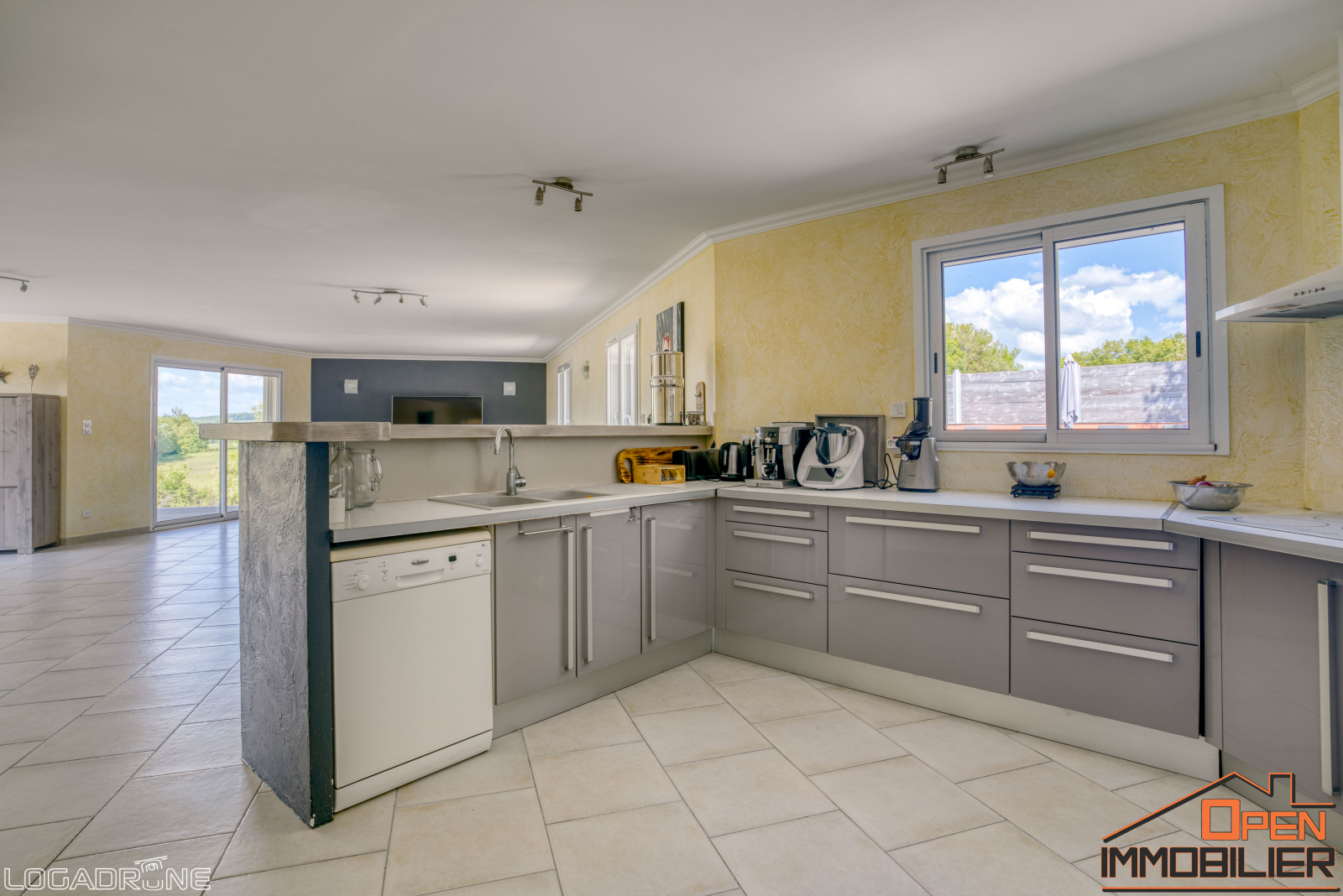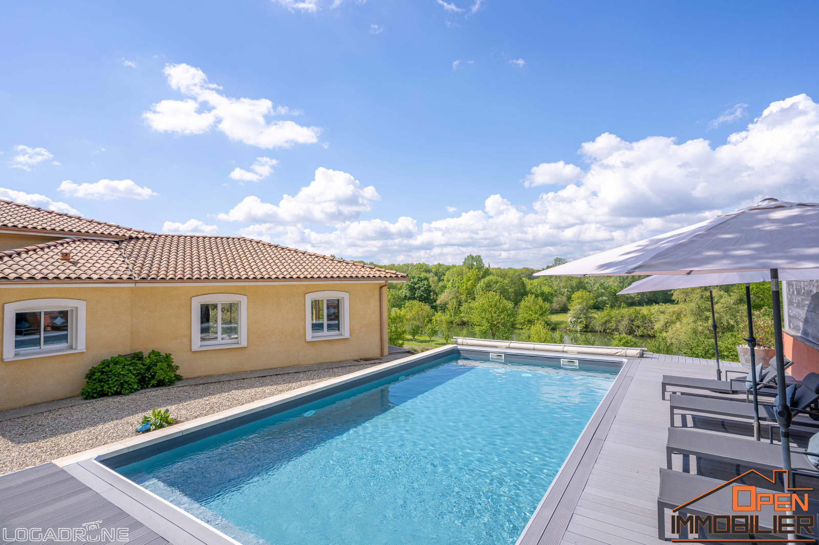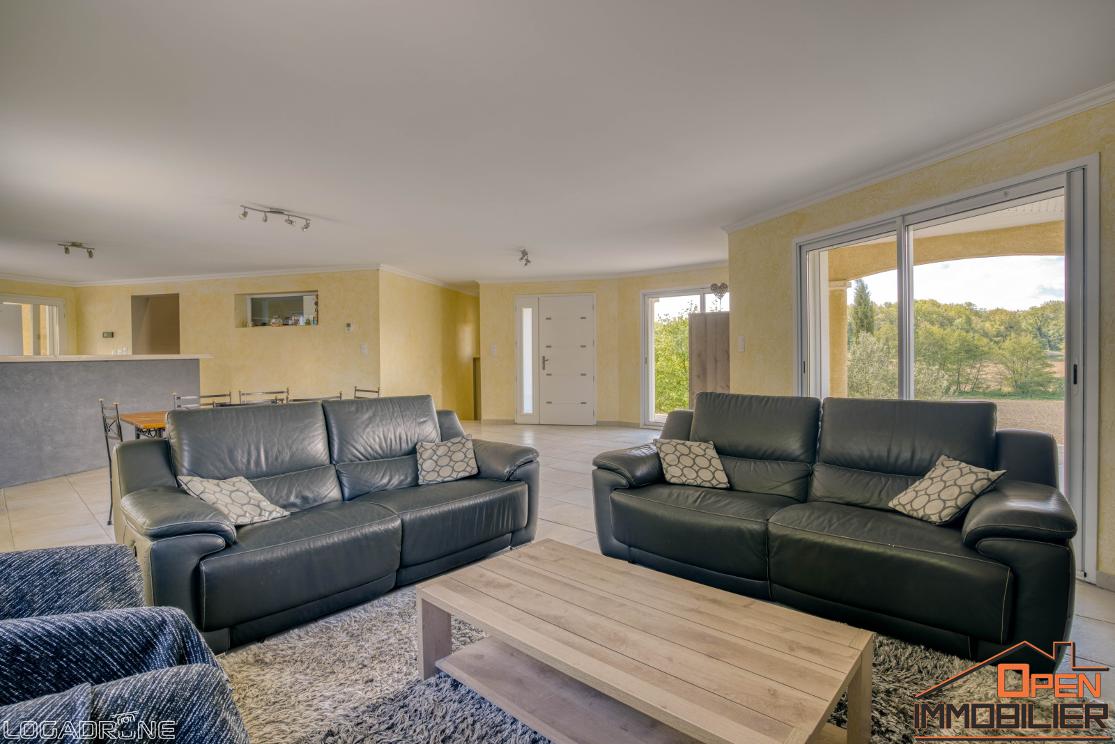 Située en campagne à 10 minutes au Nord de Villeneuve sur Lot, cette villa contemporaine de 2005 offre une expérience de vie exceptionnelle. Avec une superficie habitable généreuse de 163 m2, cette propriété est un véritable havre de paix niché sur une parcelle de 3056 m2. Dominant la campagne environnante, elle bénéficie d’une vue imprenable et offre un cadre de vie paisible à seulement 5 kilomètres de Monflanquin et 12 kilomètres de Villeneuve sur Lot.