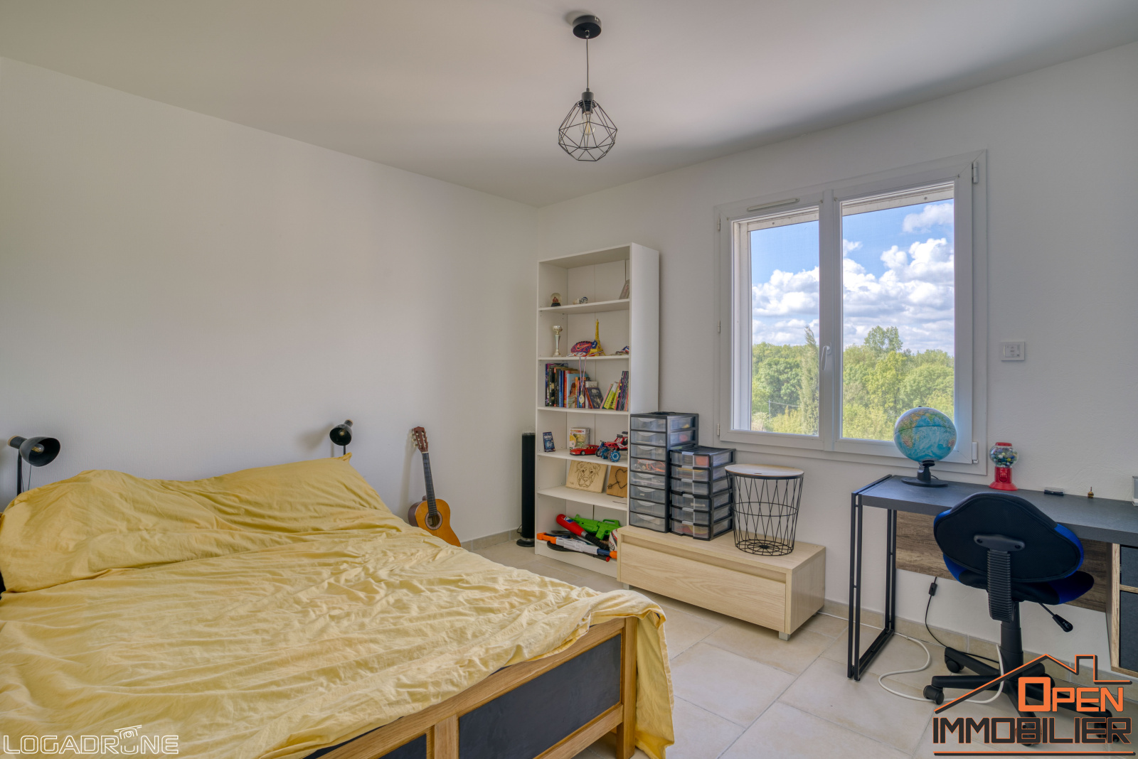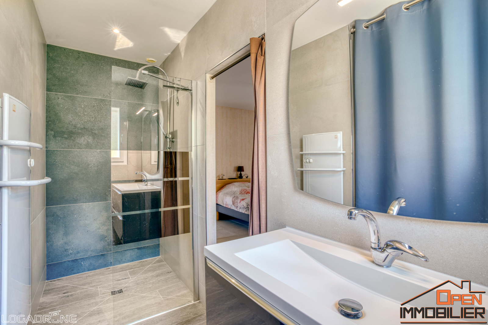 Côté nuit, cette villa propose une suite parentale luxueuse, complétée par un double dressing et une salle d’eau privative. Deux autres chambres, toutes deux dotées de placards intégrés, ainsi qu’une salle d’eau avec wc, un second wc indépendant et un espace bureau offrent un confort optimal pour toute la famille.