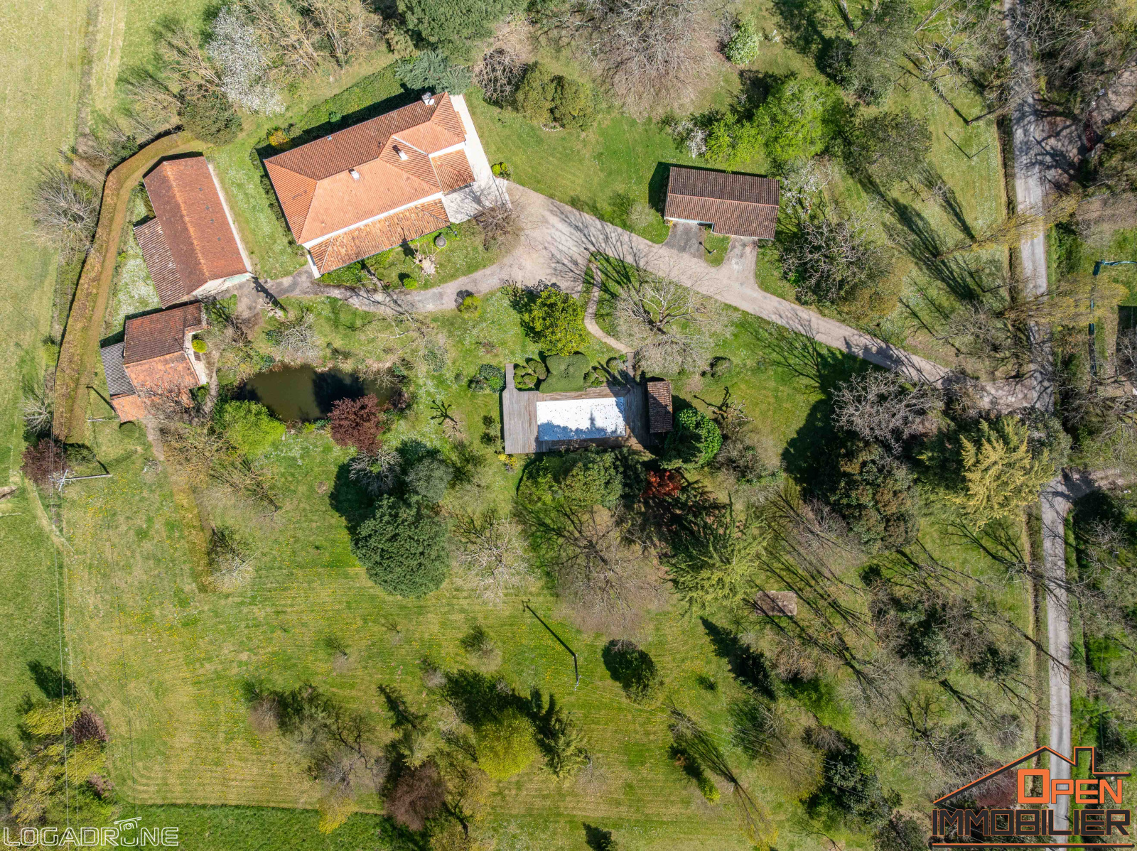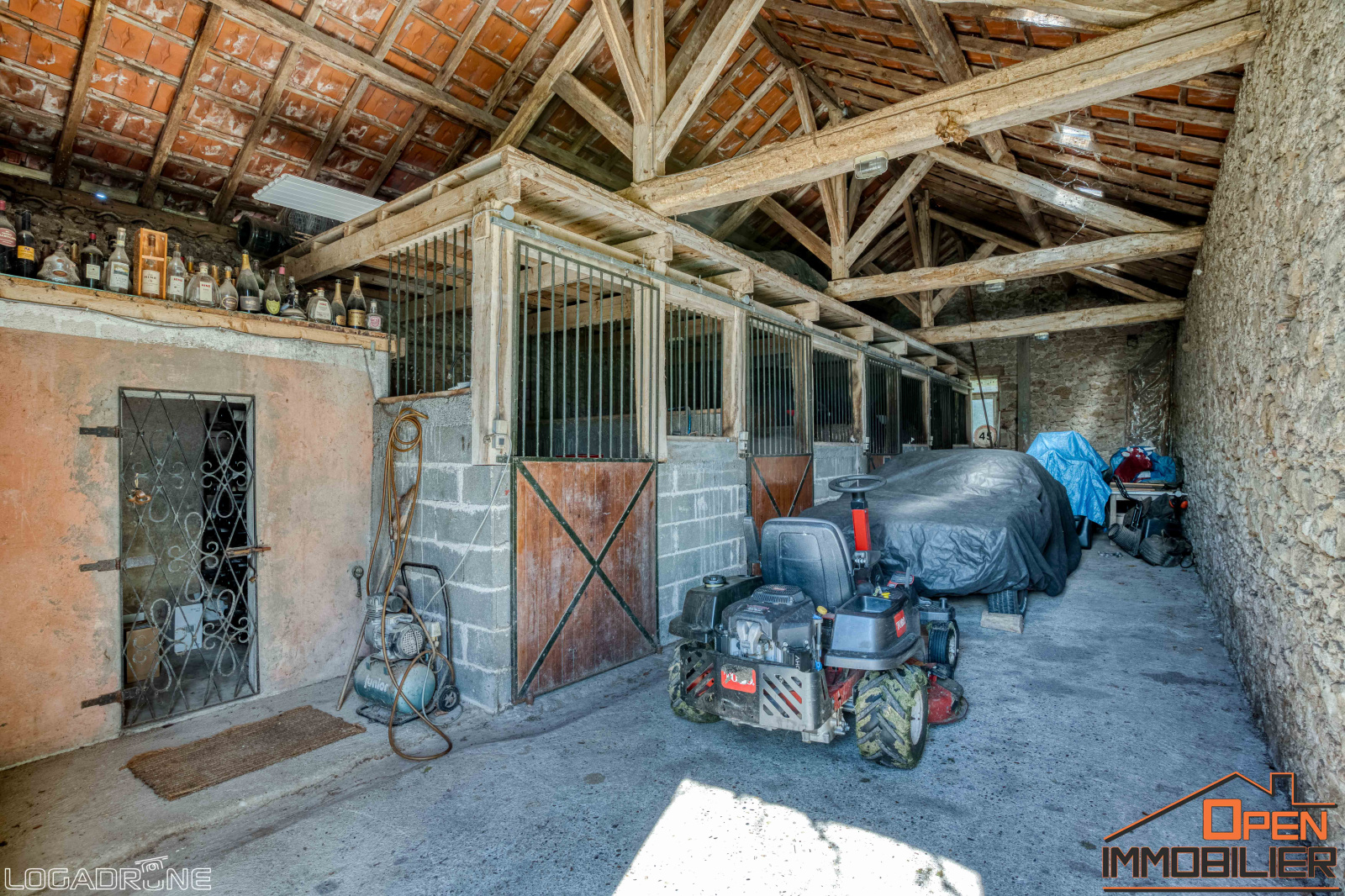 L’extérieur est un véritable havre de paix. Le parc paysager abrite une piscine traditionnelle de 10x5 m avec liner récent et rideau électrique, une grande terrasse en bois, un puits et une mare naturelle, apportant une touche bucolique au domaine. Côté dépendances, la propriété comprend une ancienne maison en pierre de 42 m² à réhabiliter, une grange de 86 m² avec boxes pour chevaux, un double garage avec atelier de 60 m² ainsi qu’une dépendance de 90 m² équipée en eau et électricité.