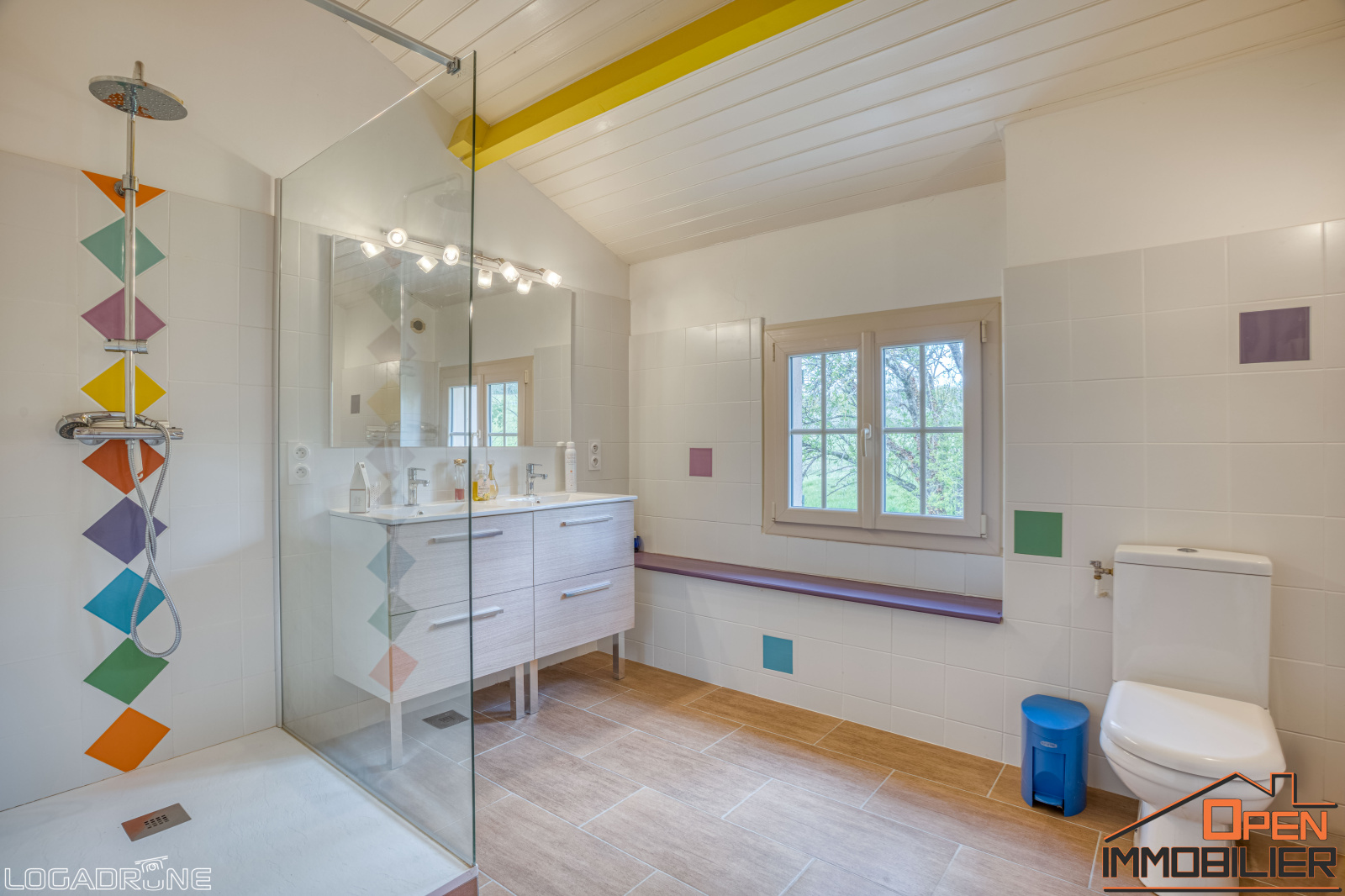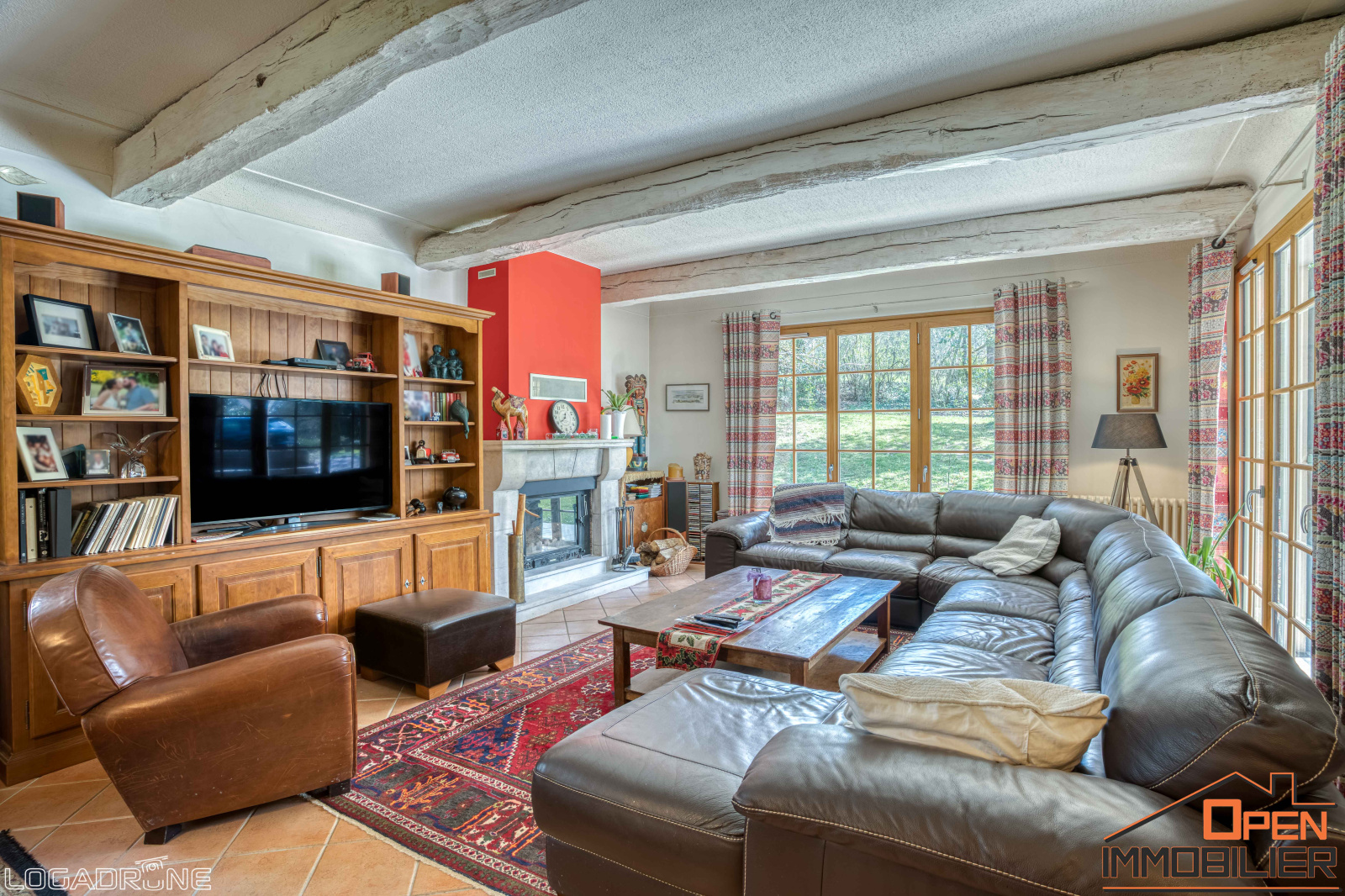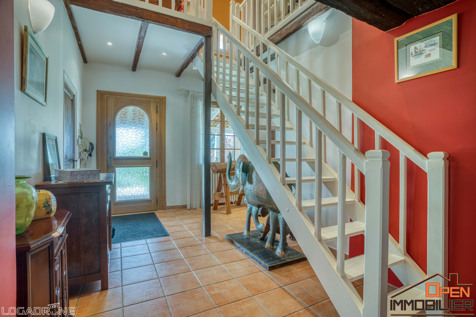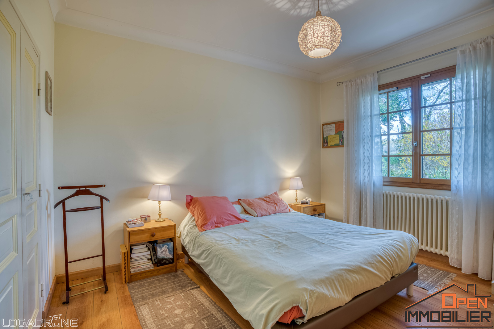 À l’étage, un palier dessert un espace détente, trois chambres mansardées, un bureau, deux salles d’eau avec WC, une chaufferie ainsi qu’un grenier aménageable, offrant encore de belles possibilités d’aménagement. Pour un confort optimal, la maison dispose de la climatisation réversible dans les chambres principales, du double vitrage, d’un chauffage central au fioul avec radiateurs en fonte et d’une fosse septique entretenue.