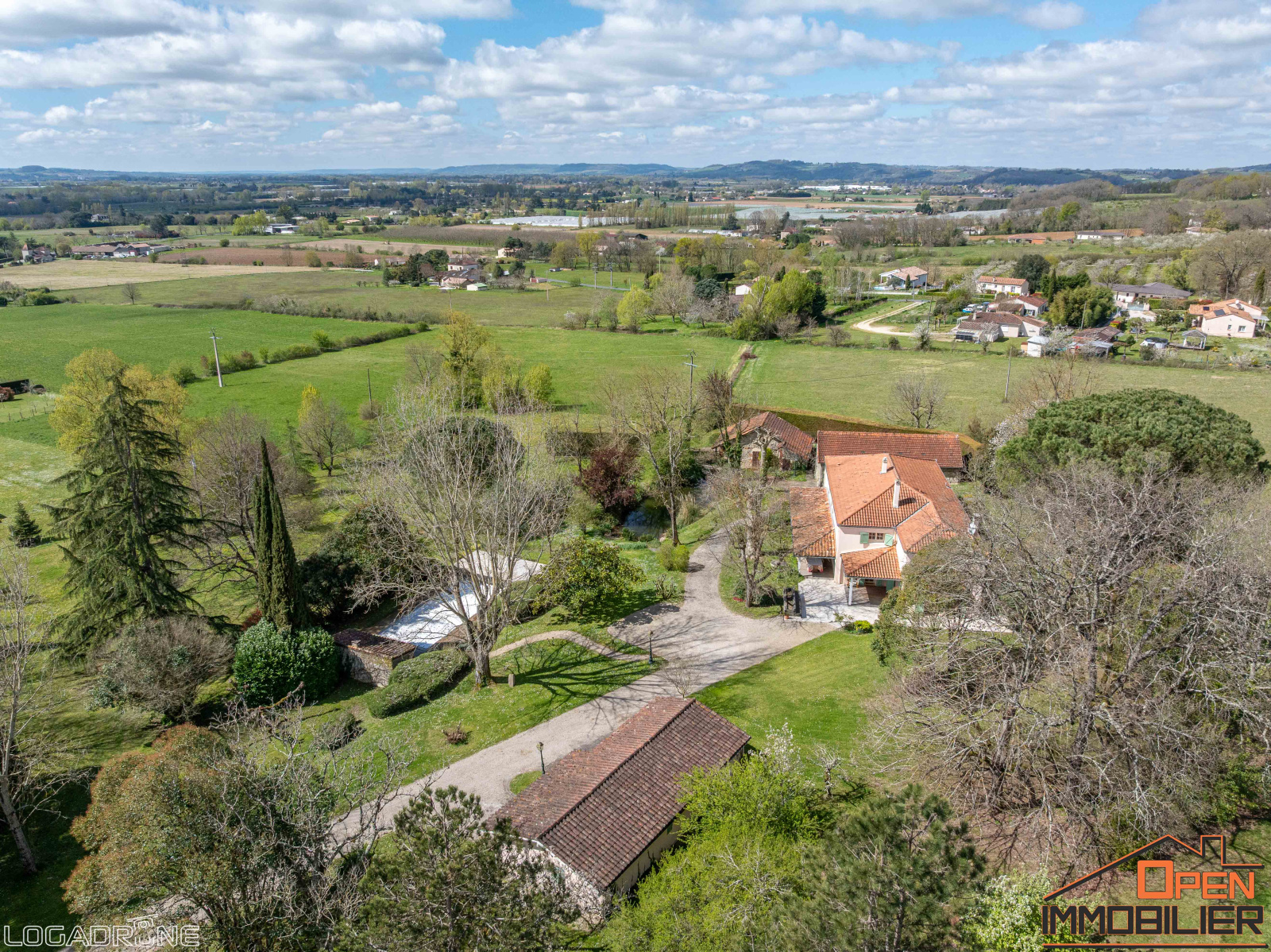 À seulement 5 minutes de Villeneuve-sur-Lot, dans un secteur calme et recherché, cette superbe propriété en pierre de 280 m² offre un cadre de vie idéal, alliant charme, confort et espace. Nichée au cœur d’un parc arboré de 12 052 m² avec une vue dégagée sur la campagne, elle séduit par ses volumes généreux, ses prestations de qualité et ses nombreuses dépendances.