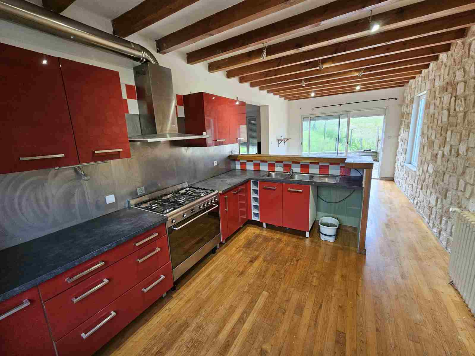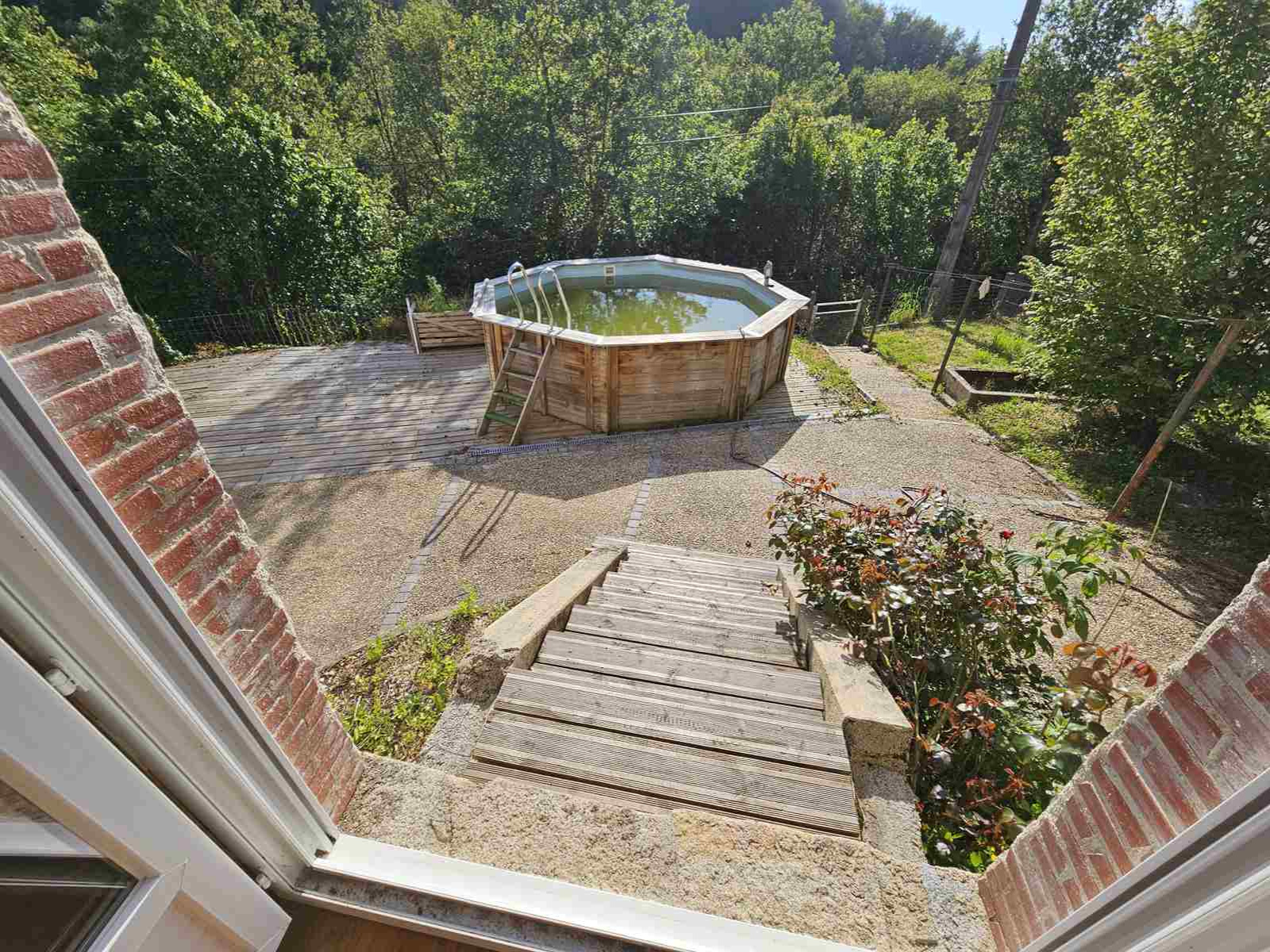 Cette habitation d'environ 105 m2 habitables, est élevée sur caves. Elle se compose d'une salle à manger avec cuisine ouverte, d'un salon équipé d'un poêle à granulés chauffant efficacement toute la maison, d'une première chambre avec sa salle d'eau et son WC, d'un bureau et d'un second WC indépendant. A l'étage, 3 chambres mansardées (10,5 ; 13 et 24 m2 au sol), une pièce de passage polyvalente pouvant servir de bureau ou de petit salon détente, d'une salle d'eau. Huisseries en double vitrage, stores électriques, pompe à chaleur de 2 ans avec ballon thermodynamique. A l'extérieur, une petite terrasse dallée devant, une grande terrasse dallée à l'arrière avec piscine hors sol et un espace four à pizza, barbecue et plan de travail, idéale pour vos soirées estivales, un espace vert, un garage attenant pouvant accueillir une petite voiture, un second garage un peu plus loin pouvant accueillir une seconde voiture. Sur parcelle de 505 m2. Assainissement non conforme.