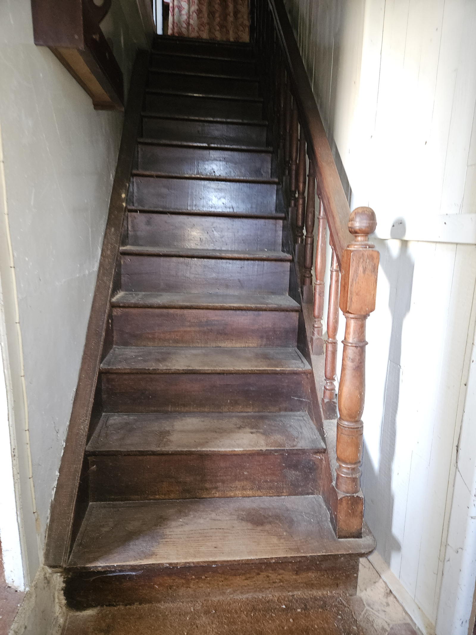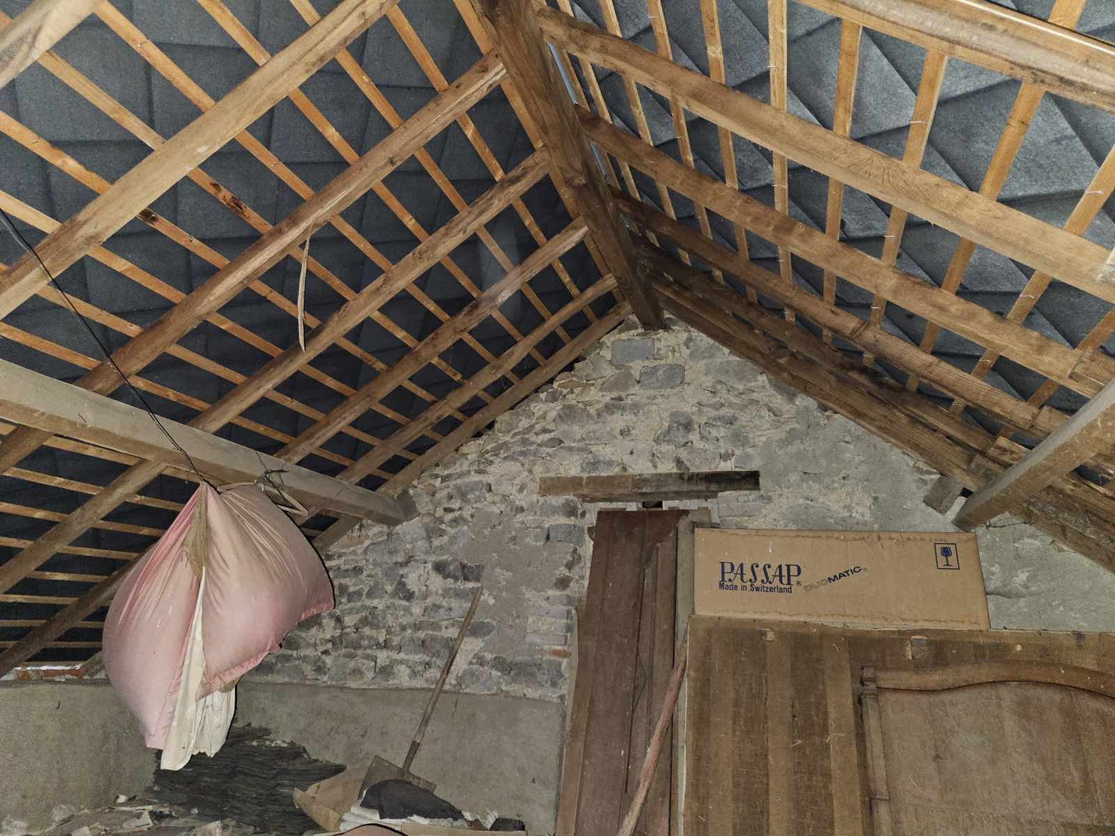 Elle se compose en rez-de-chaussée d'une entrée, salon, cuisine, une 1ère chambre, un cellier pouvant être transformé en chambre, salle d'eau, WC indépendant. Au 1er étage deux autres chambres et au-dessus un grenier pouvant être aménagé. Une grange attenante de 42 m2 au sol et un grand hangar à l'arrière.