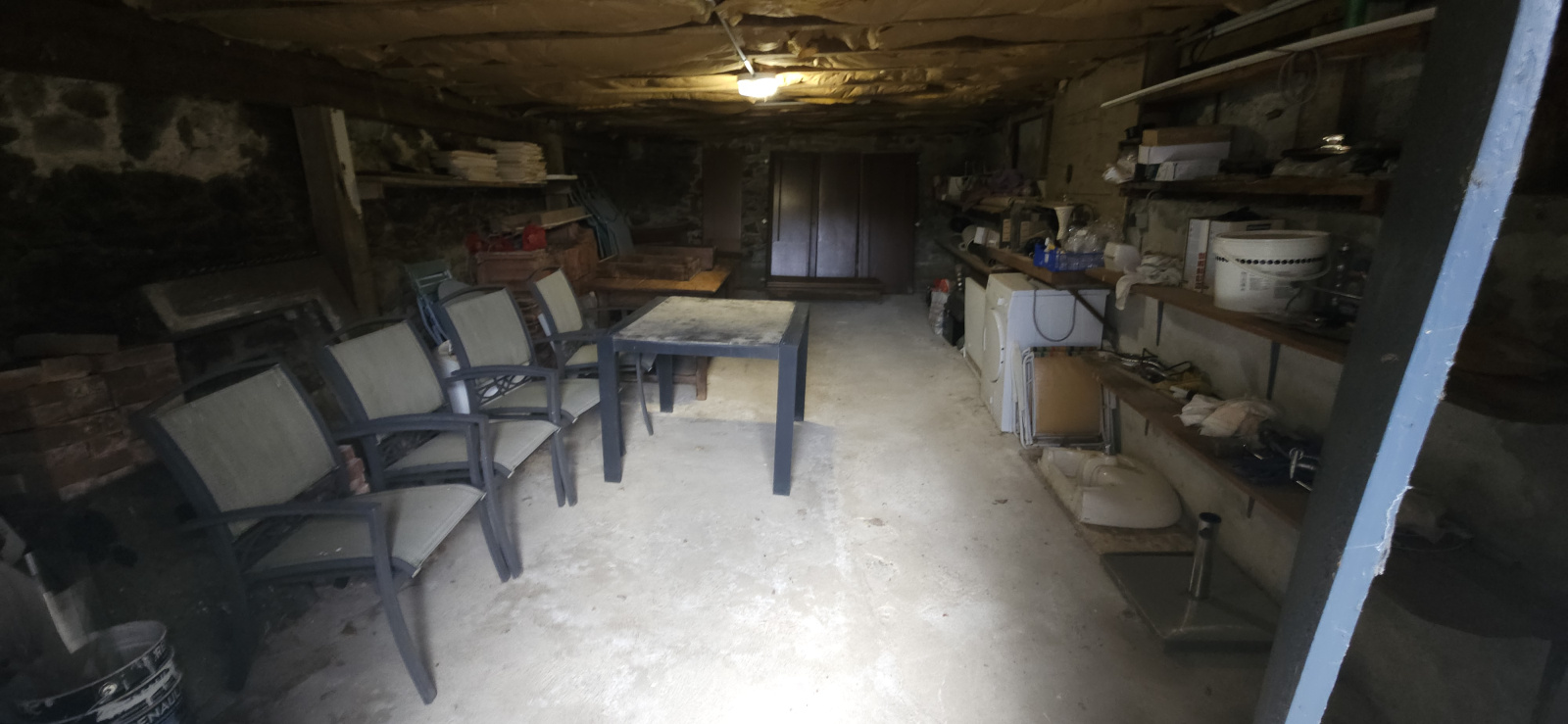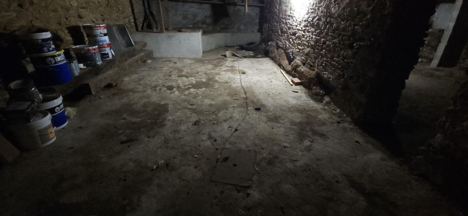 Elle est élevée sur 2 caves et un garage. La partie habitation comprend une entrée donnant sur une pièce de vie lumineuse avec cheminée, une cuisine ouverte entièrement aménagée et équipée, 2 spacieuses chambres (14 et 16.5 m2) avec parquet, dont une avec un grand placard intégré, un spacieux dégagement, une salle de bains, un WC séparé et d'une pièce morte (sans ouverture sur extérieur) de 11 m2, faisant office de 3ème chambre (possibilité d'y installer un puit de lumière).