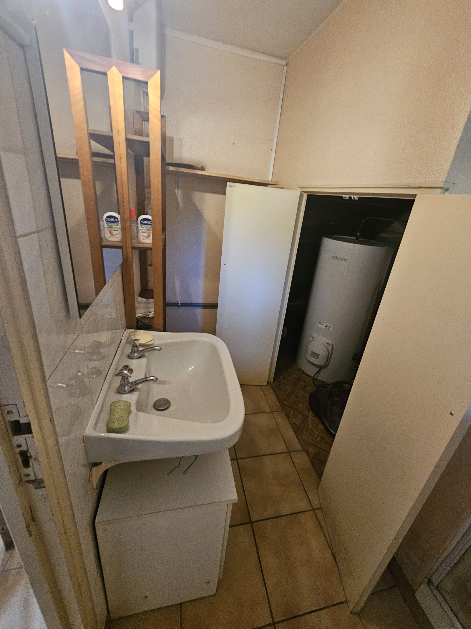 un point d’eau et un espace grenier attenant, pouvant être utilisé en rangement.