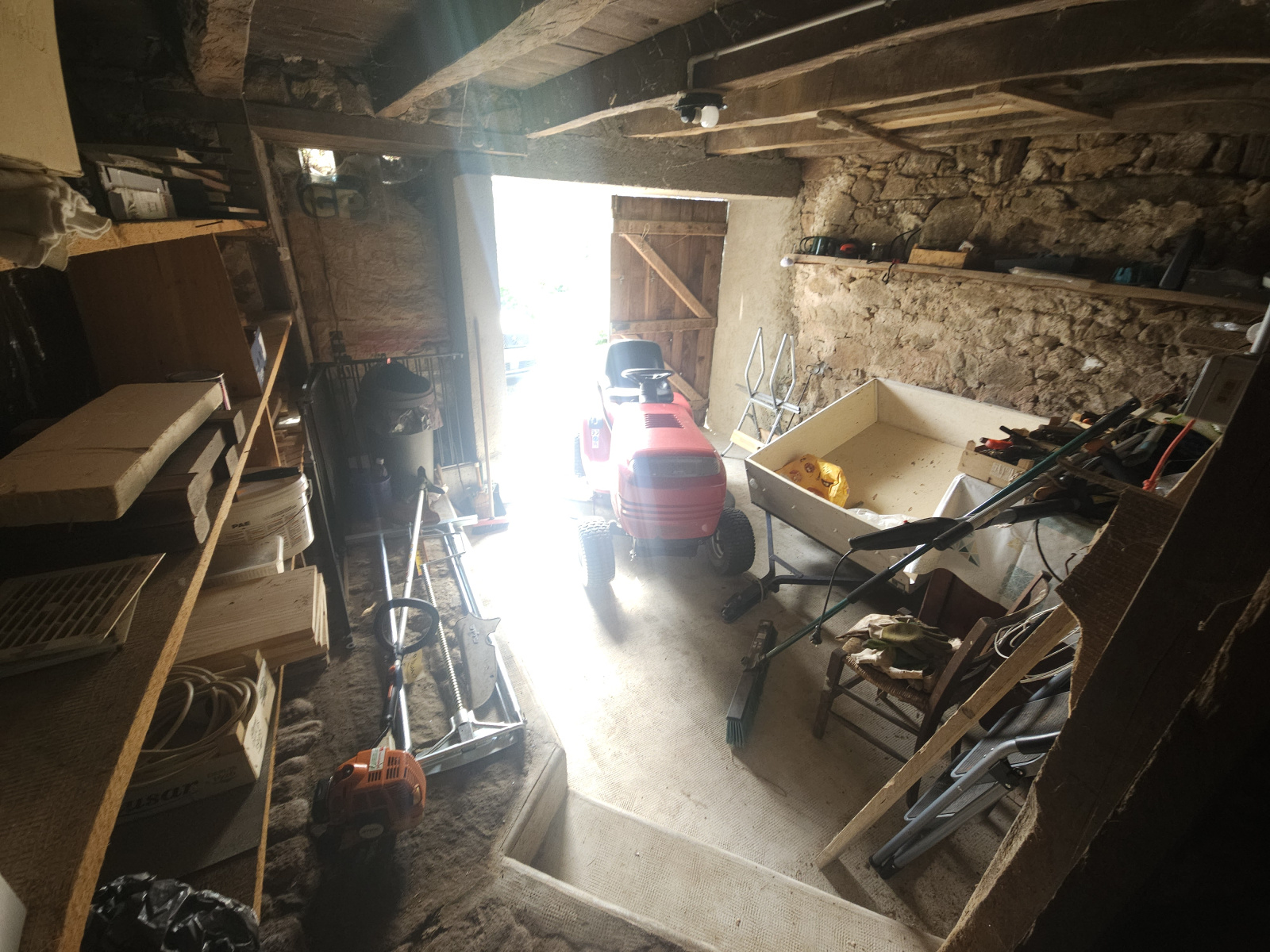 La propriété comprend également un bâtiment attenant composé au rez-de-chaussée d’une cave, d’un garage, d’un bûcher et d’un fournil en bon état. A l’étage, un grenier aménageable, avec possibilité de le relier directement à l’étage de l’habitation principale via le couloir existant.