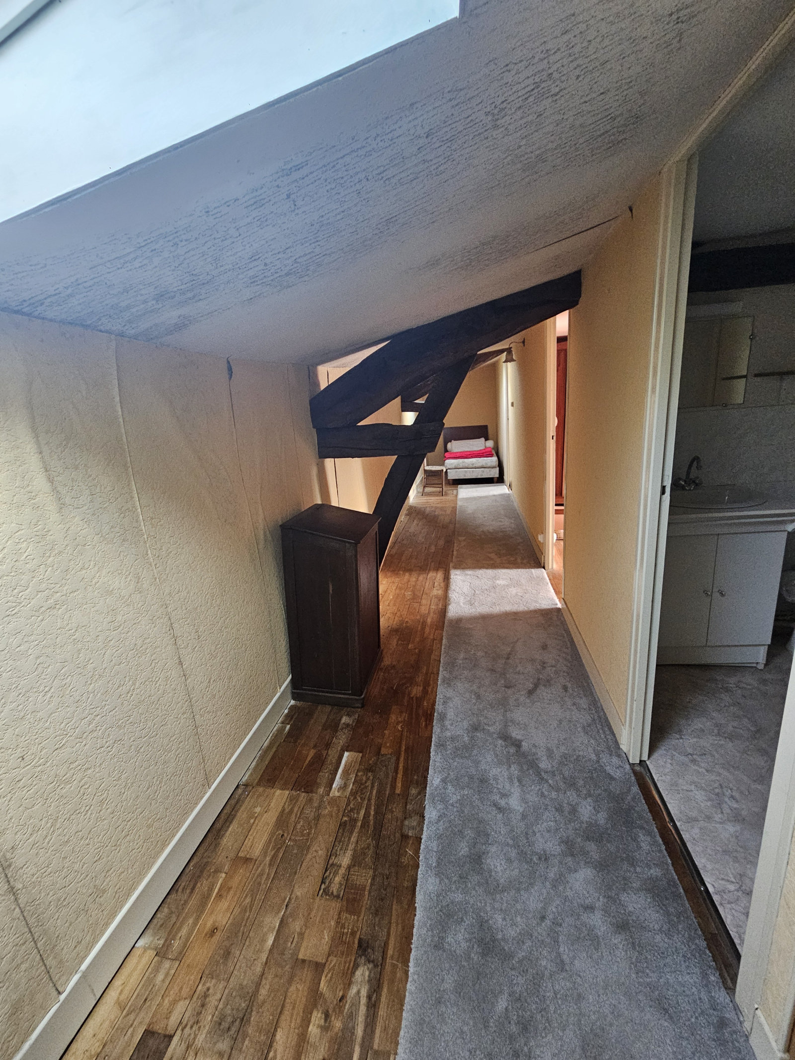 À l’étage, vous trouverez : un couloir lumineux grâce à ses deux grand vélux récents, desservant deux belles chambres spacieuses avec vue sur la campagne,
